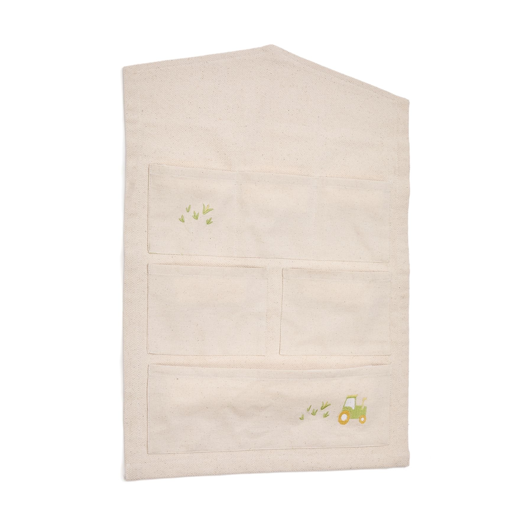 Организуйте вещи стильно и с комфортом. Подвесной органайзер Pecky, изготовленный из 100% хлопка, предлагает шесть карманов разных размеров для организации необходимых вещей для малышей.