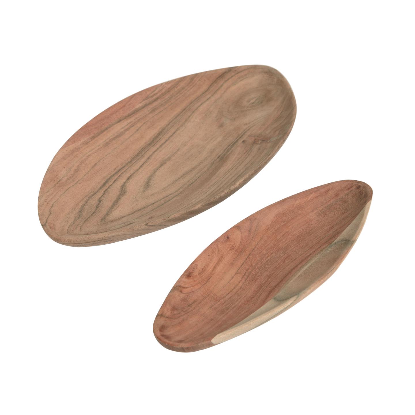 Подносы полностью сделаны из массива акации в натуральной отделке. Они имеют форму овала, с обработанным краем методом шлифования.