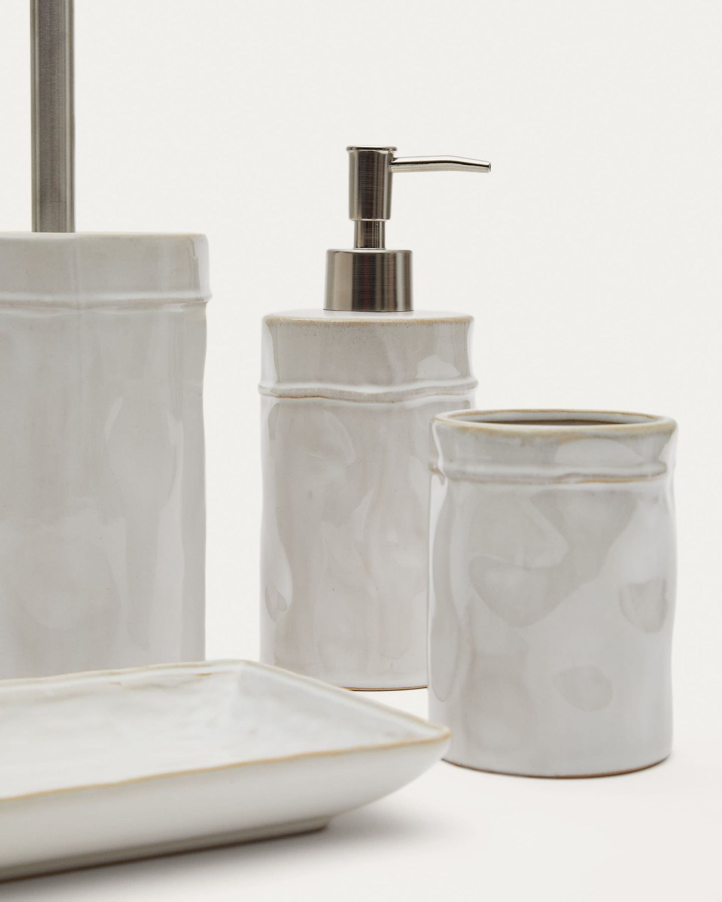 Набор аксессуаров Savel от фабрики La Forma (ex Julia Grup) – глянцевая керамика с эффектом неидеальной формы.