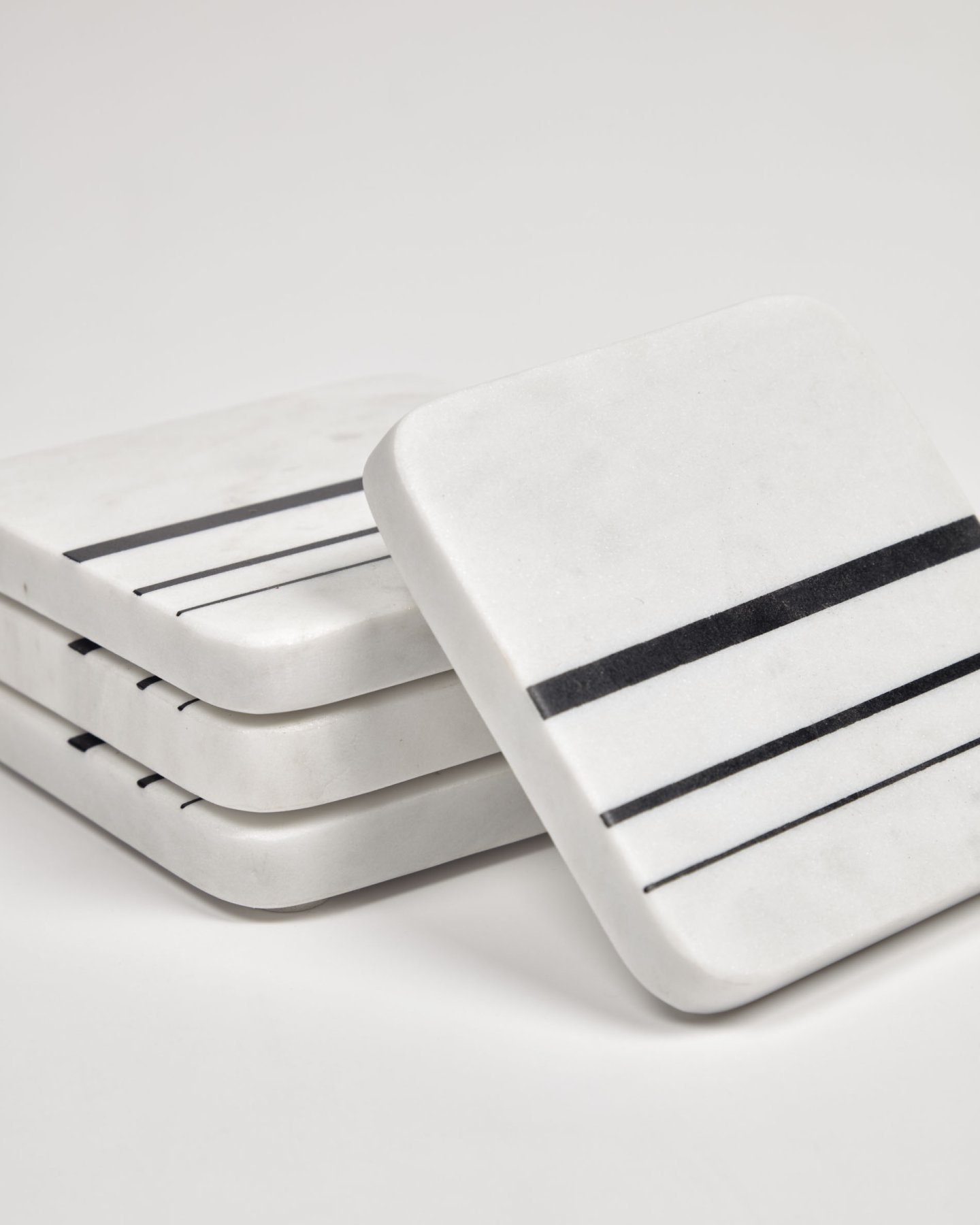 Набор из 4 подставок Tahina от фабрики La Forma (ex Julia Grup) – черно-белый мрамор для вашего аперитива.
