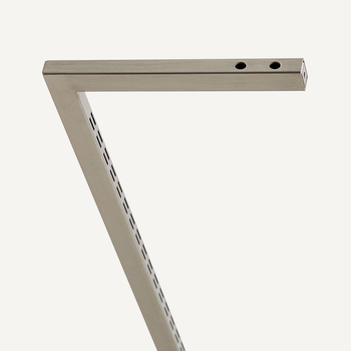 Уголки соединяют деревянные части с опорами. Они имеют много положений, тем самым вы можете настроить высоту деревянных элементов по усмотрению.