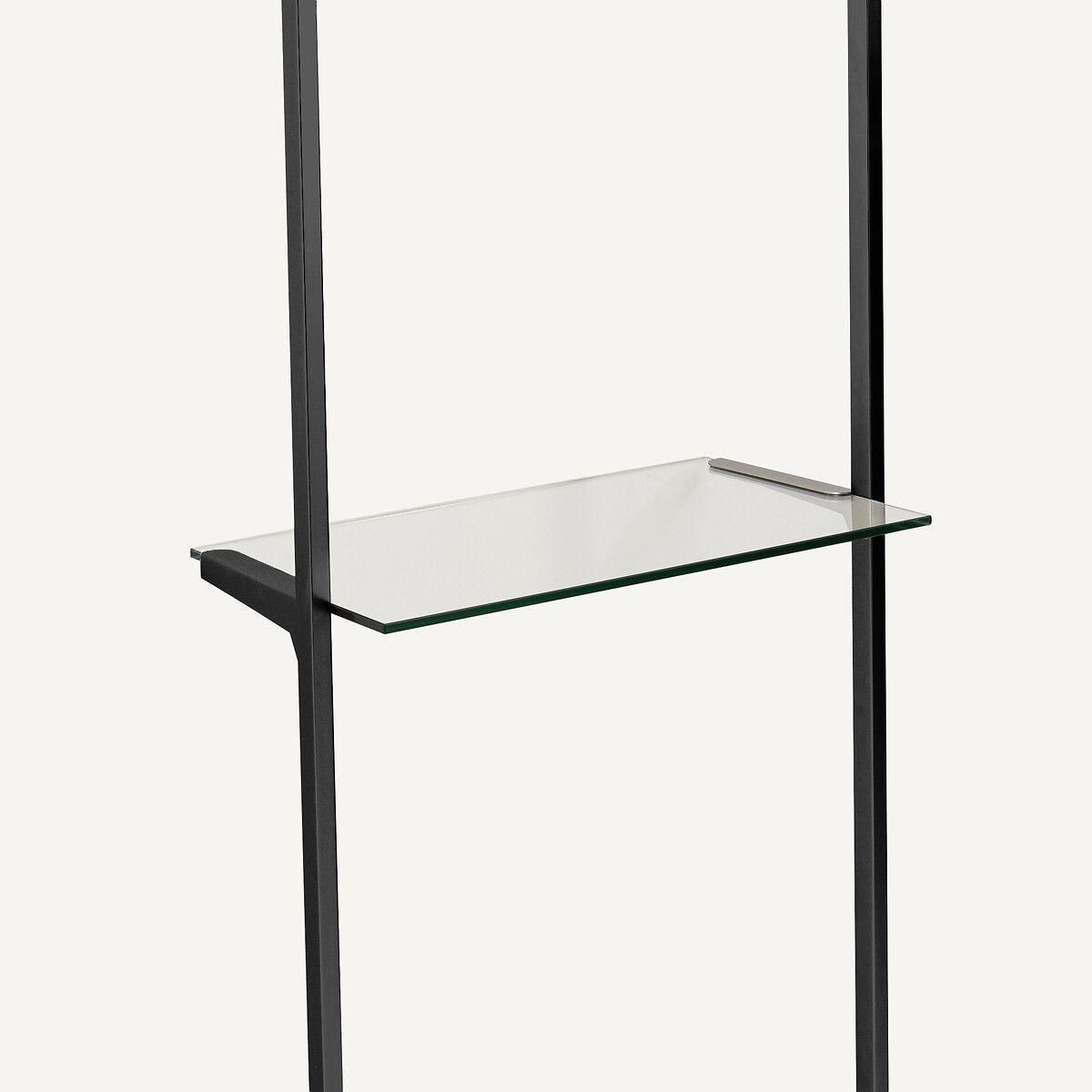 Продается с двумя уголковыми кронштейнами из стали черного матового цвета или под блестящий никель. Крепятся к каждой полке маленьким винтом с пластиковой шляпкой (в комплекте), затем к опорам в зависимости от желаемой высоты. Это изделие совместимо только с опорами Archivita XL, продающимися отдельно на нашем сайте.