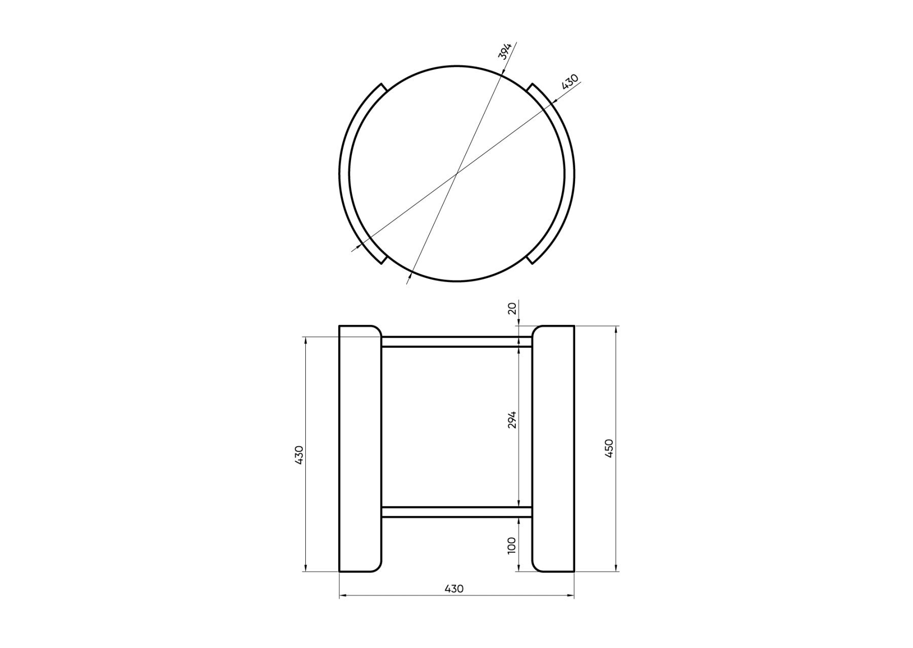 Диаметр столешницы: 39.4 см