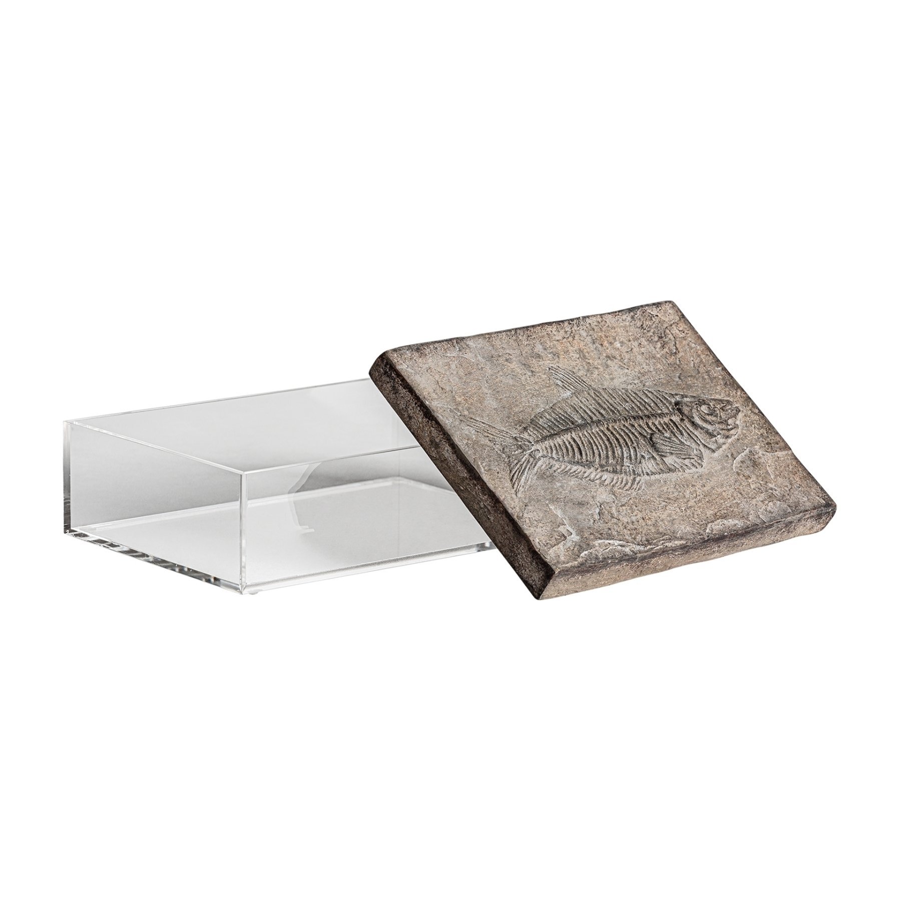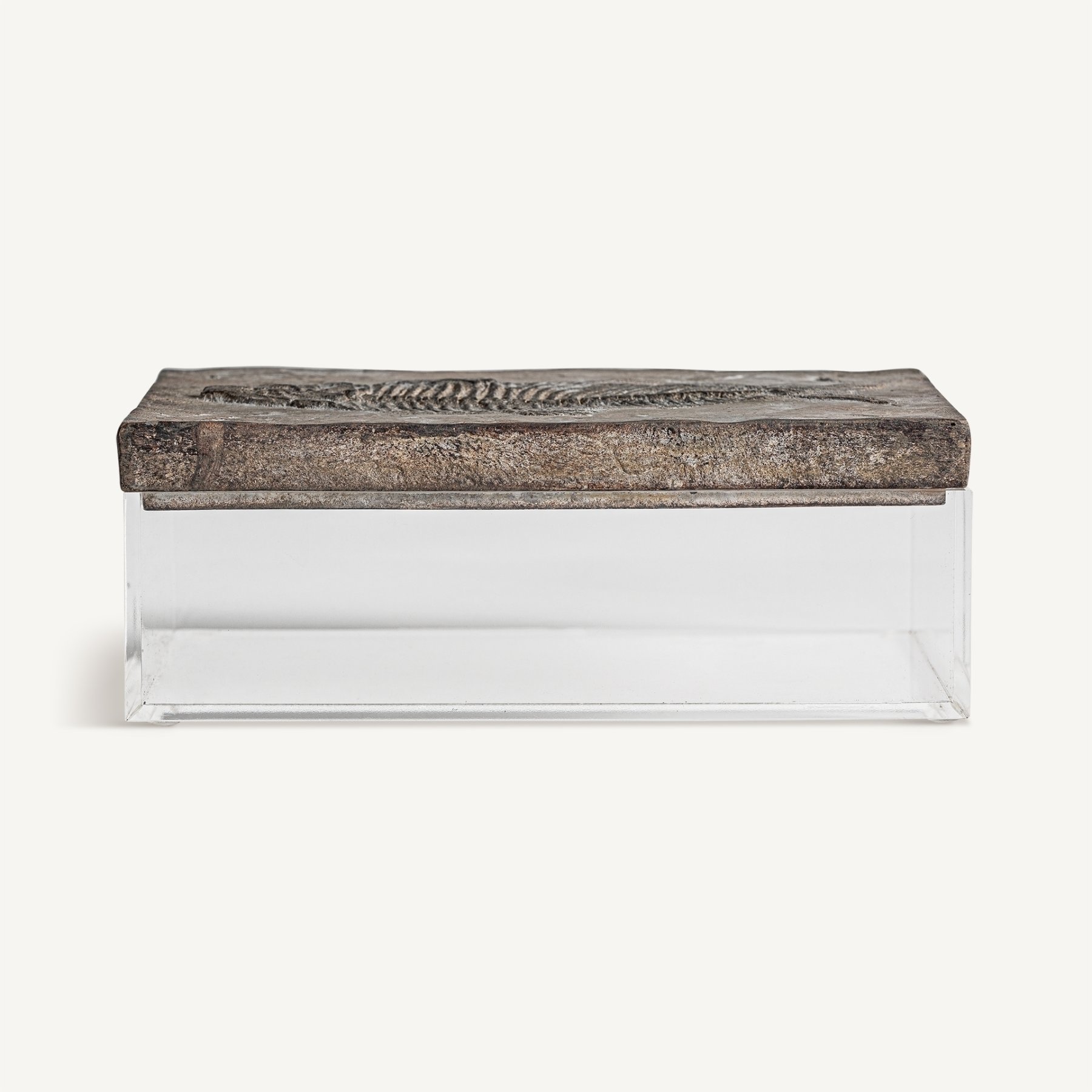 Прямоугольная коробочка светло-коричневого цвета в винтажном стиле. Изготовлен из смолы в сочетании с акрилом. Съемное изделие.