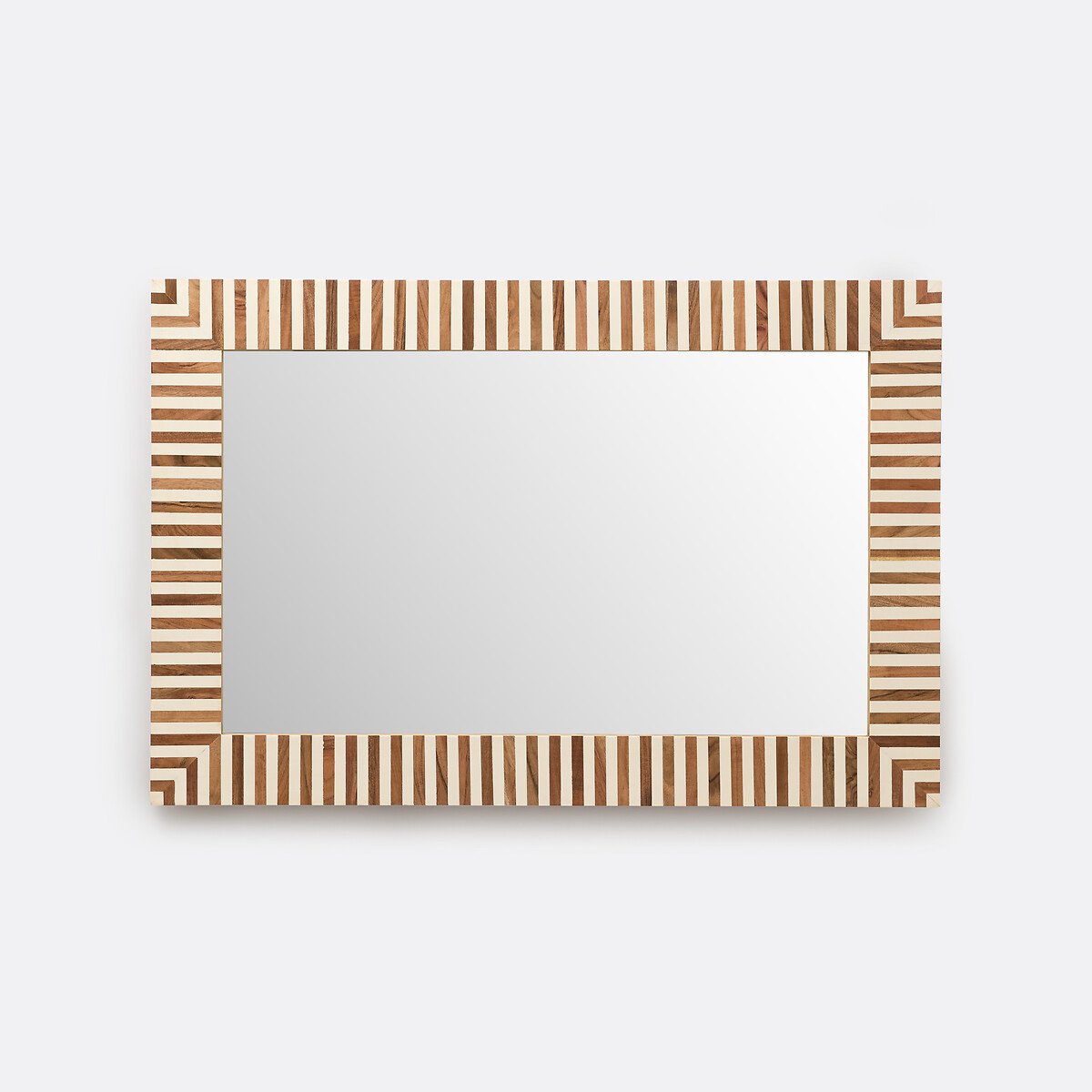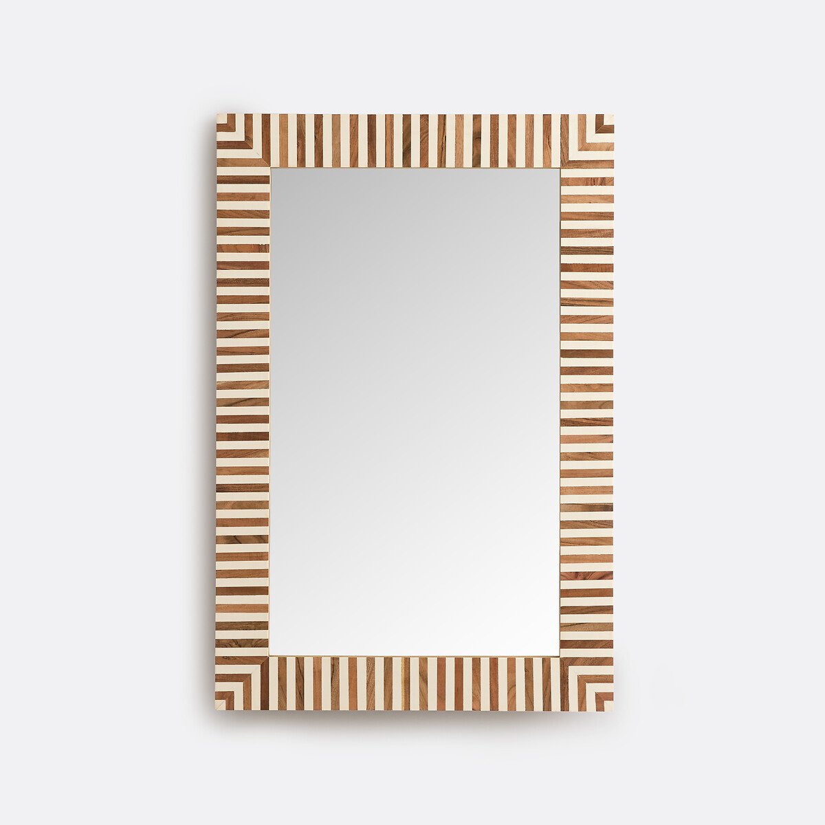 Его рама с четкими графическими полосами из чередующегося дерева и смолы привлекает внимание. Глядя на зеркало Ares / Арэс, почти забываешь, что оно сделано вручную. Повешенное на стену или поставленное на комод, оно работает в полную силу .Описание • Из смолы и МДФ • Настенный монтаж (винты и дюбели не входят в комплект) или установка отдельно стоящим предметом • Ручная работа, каждое изделие уникально: цвета и размеры могут незначительно отличаться.Размеры • Длина: 60 см • Высота: 90 смРазмеры и вес упаковкиОдна упаковка • Ш98 x В68 x Д10 см, 10,2 кг