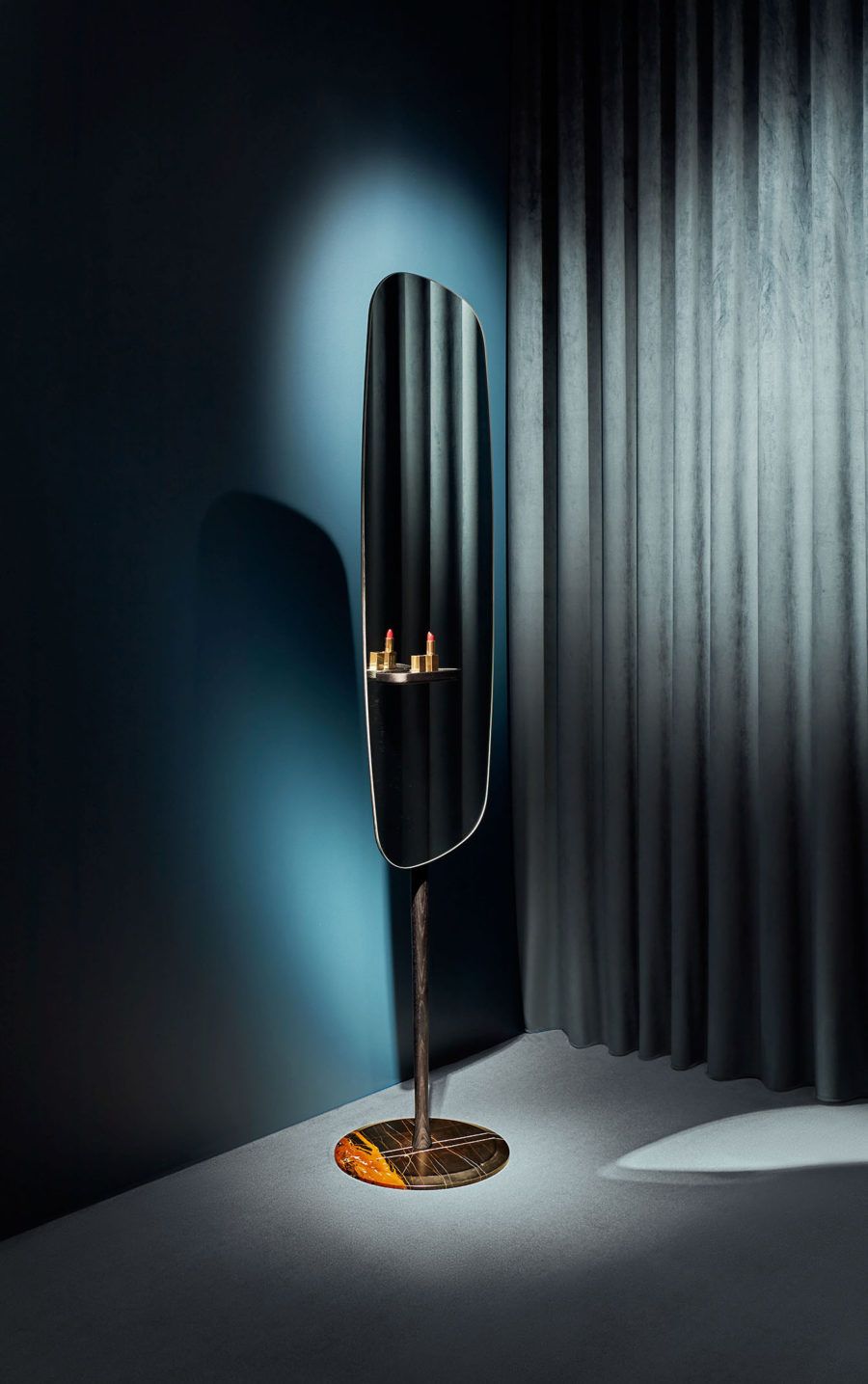 Уникальность этого зеркала заключается в его тщательно продуманных пропорциях. Отличается оригинальным подносом из натурального дерева с мягкими линиями, выполненными вручную. Выделяется мраморная отделка основания.