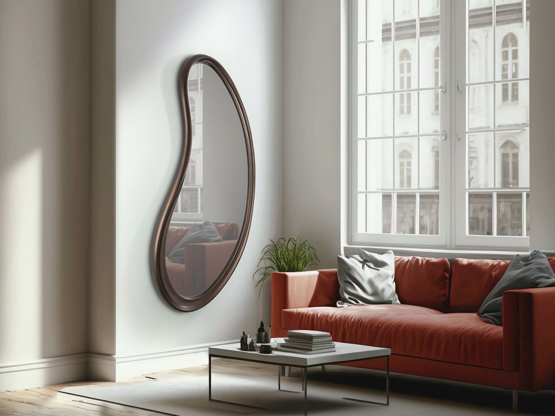 Декоративное зеркало с рамой из полиуретана, отделка темная бронза.