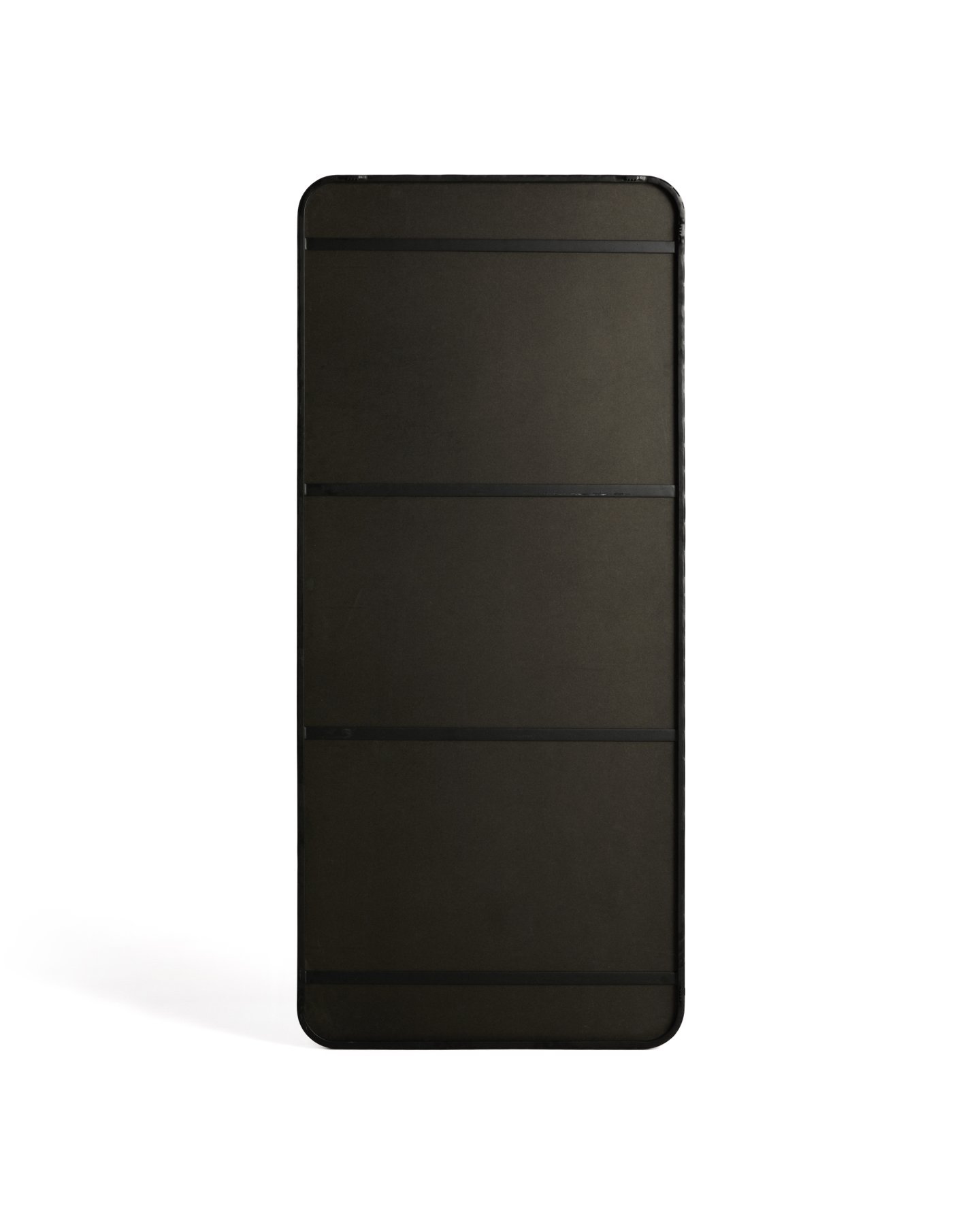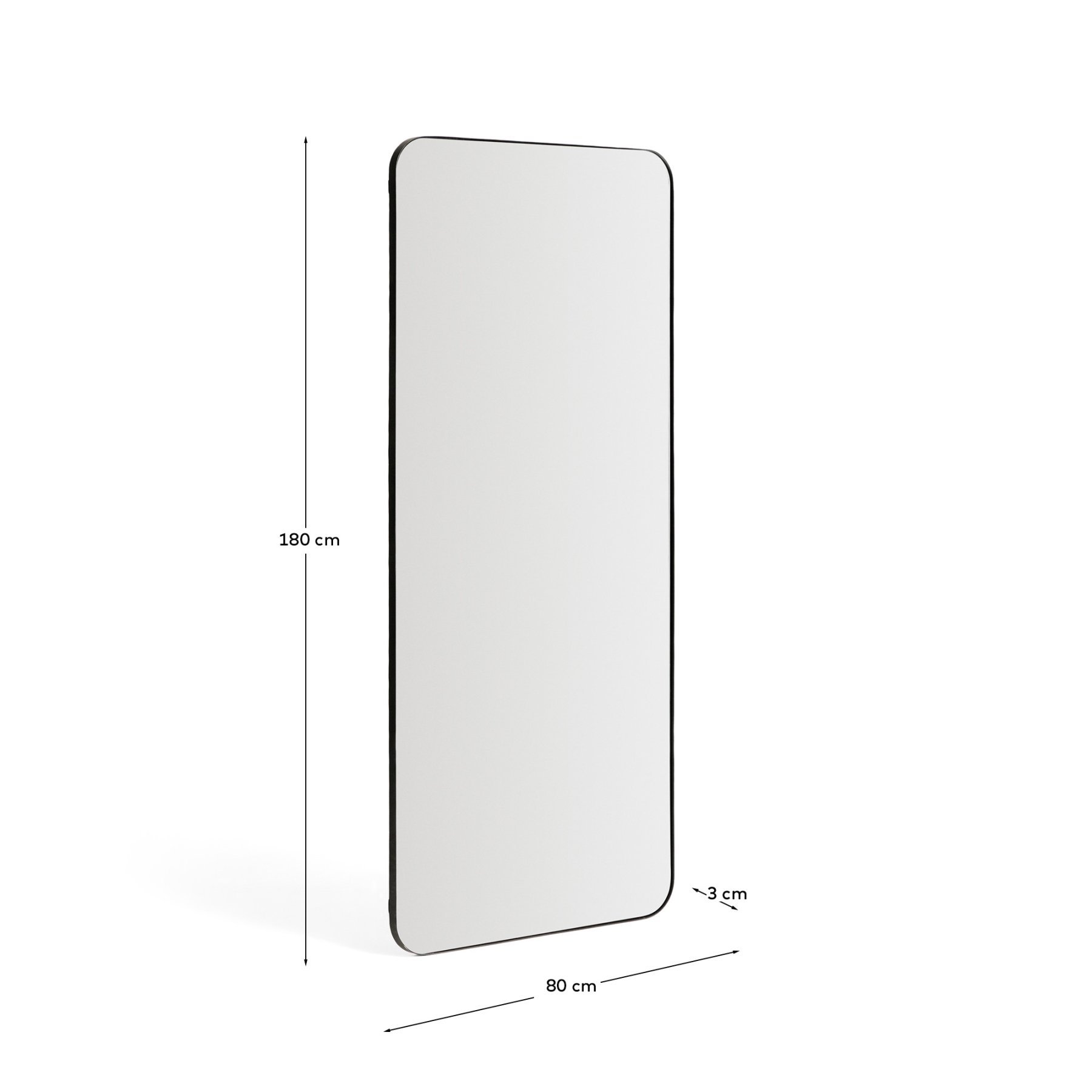 Это зеркало отличается минималистичным дизайном и чистыми линиями, подчеркнутыми металлической рамой, которая придает ему солидность и стиль. Оно легко впишется в любой интерьер, от спальни до прихожей или гардеробной. Прямоугольная вертикальная форма визуально расширяет пространство и добавляет света, делая его функциональным и декоративным элементом. Его удобно и безопасно крепить на стену благодаря крючкам на задней стороне, которые позволяют надежно закрепить зеркало.