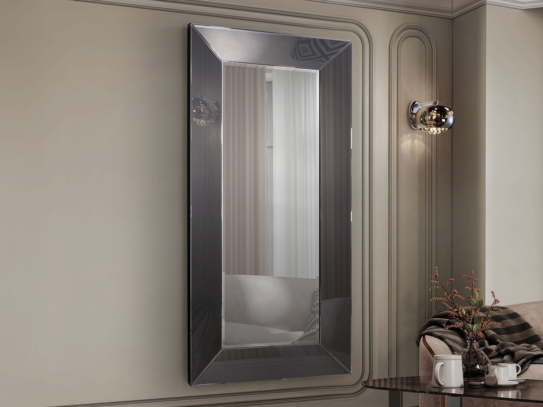 Рамка дымчатого цвета, ширина 18 см.
