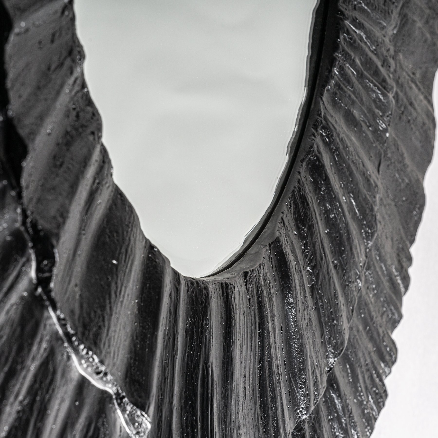 Зеркало черного цвета в современном стиле. Изготовлен из смолы в сочетании с зеркалом и железом.