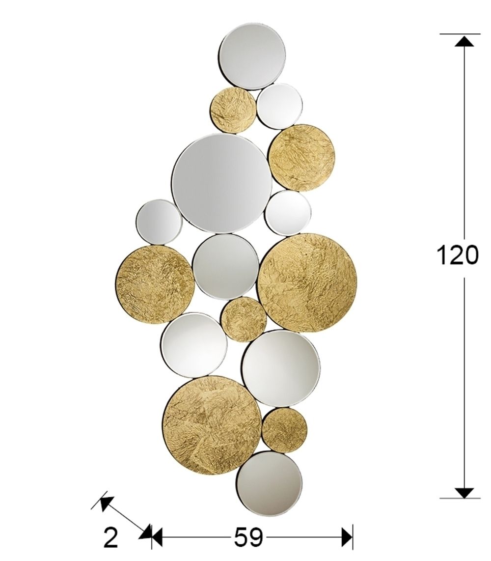 Зеркало в виде сферических зеркал и стекол с позолотой. Задняя часть выполнена из МДФ, окрашенного в черный цвет.