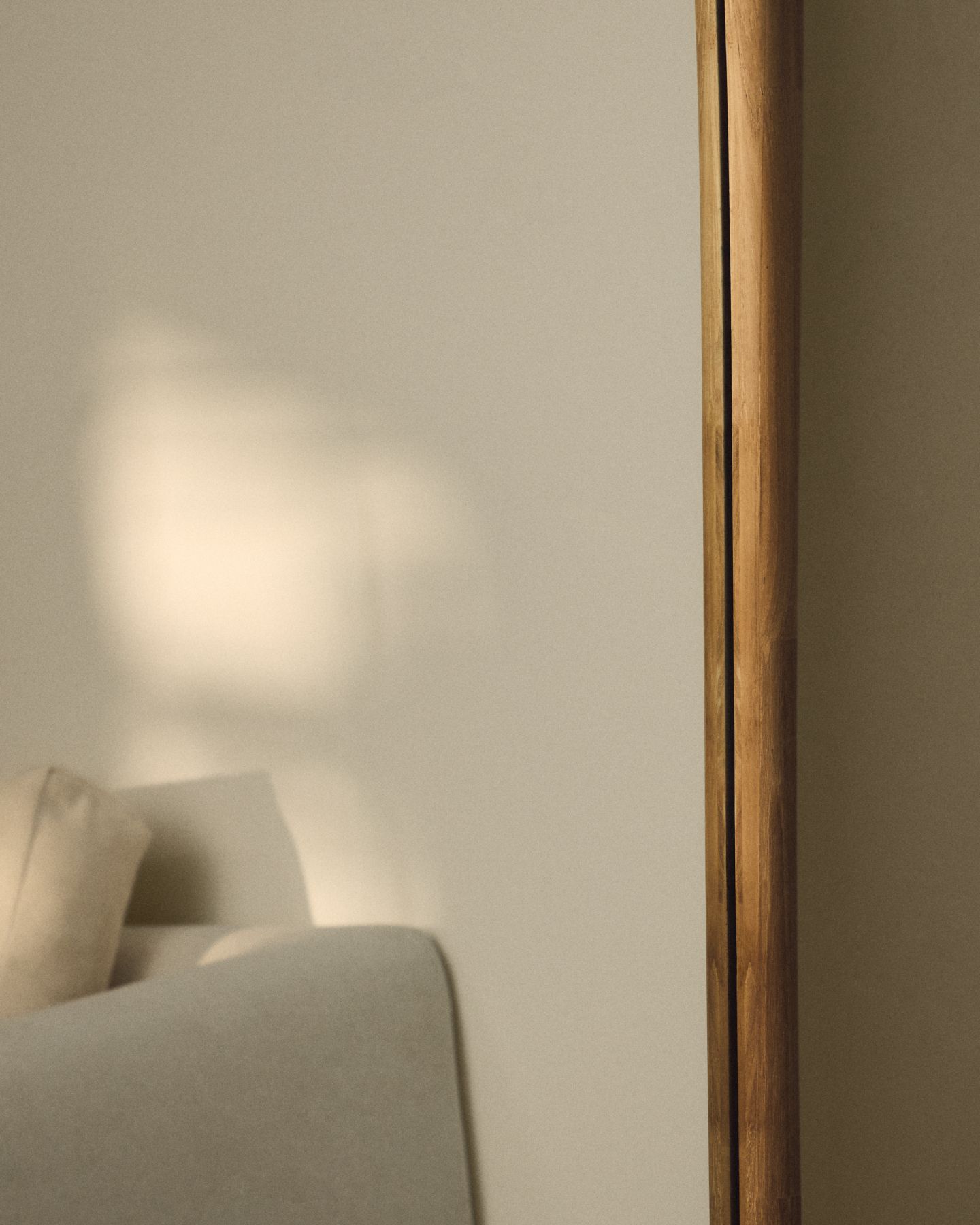 Это зеркало органичной формы из тикового дерева отличается плавным и элегантным дизайном. Его уникальный силуэт придаёт динамичность и индивидуальность любому помещению, превращая его в декоративный элемент, сочетающий в себе функциональность и эстетику. Идеально дополняющее современный или более тёплый интерьер, это зеркало привнесёт индивидуальность и оригинальность в любой уголок дома.
