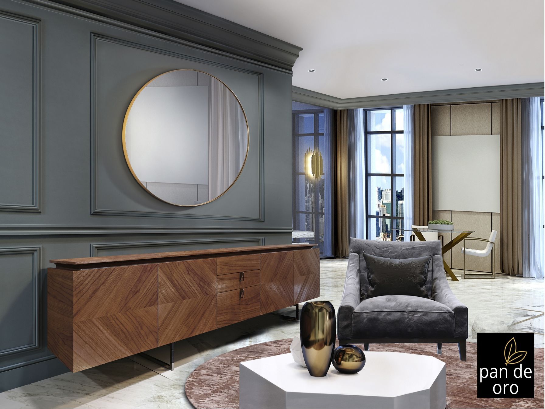 Зеркало круглое в раме из MDF c покрытием из золотой фольги.