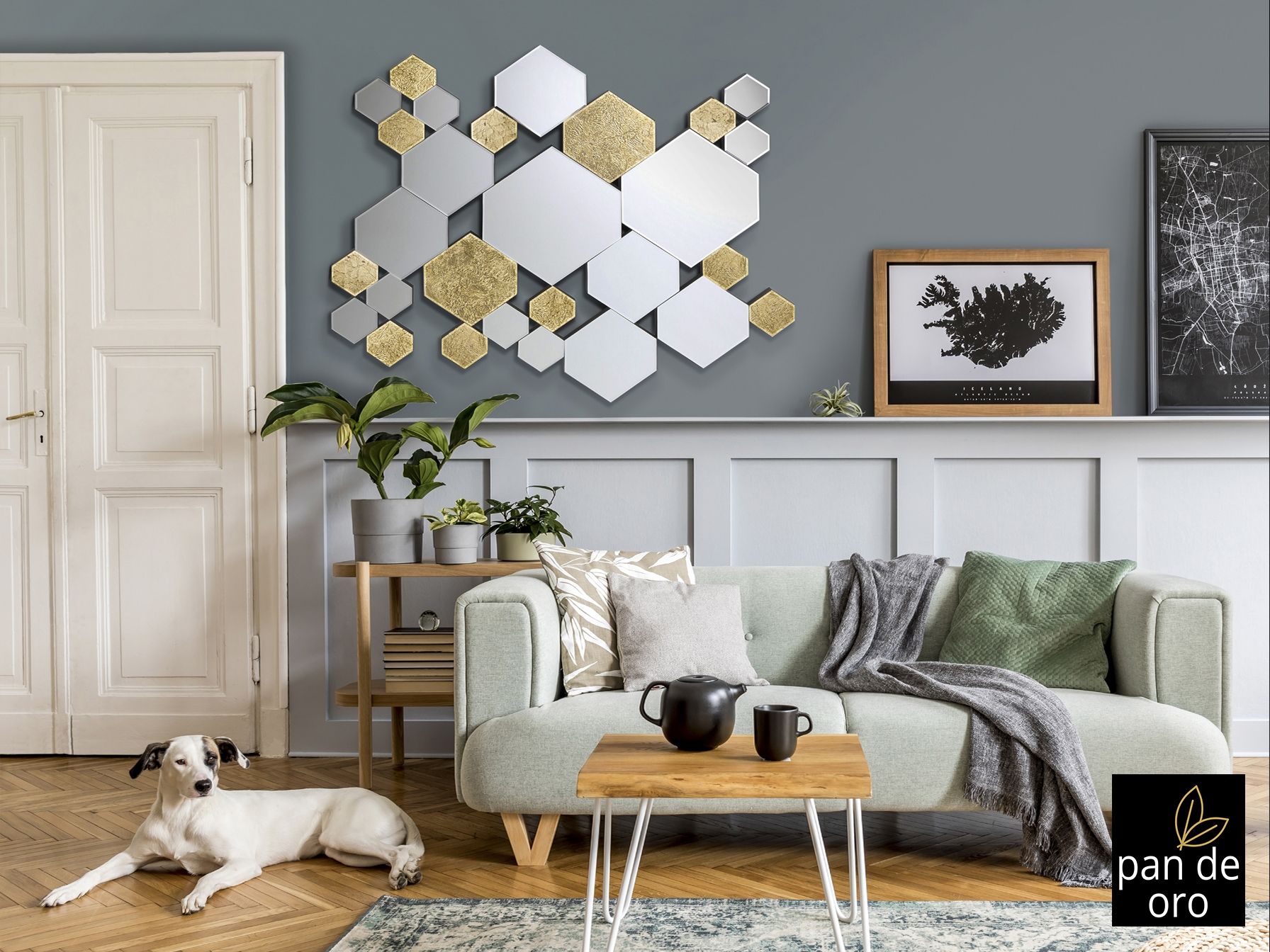 Зеркало образовано шестиугольниками лун и кристаллов с дном из ЗОЛОТОЙ ПАНЕЛИ, скошенное. Задняя часть из лакированного МДФ черного цвета. Готовы повесить в горизонтальном или вертикальном положении.