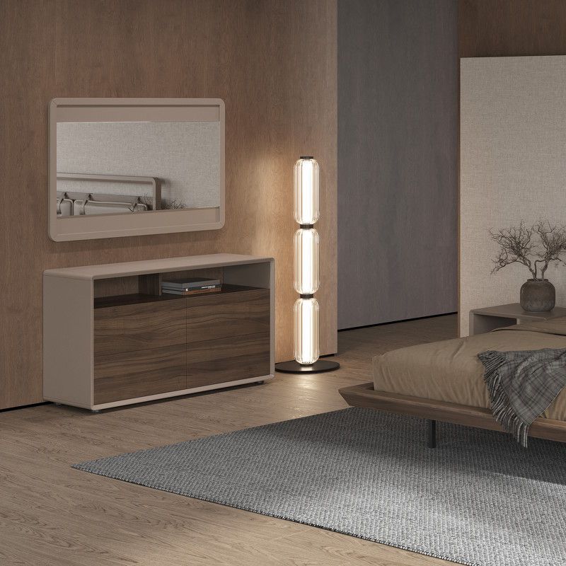 Рама и задняя часть зеркала выполнены из высококачественного МДФ класса Е1. Отделка - матовый лак светло-бежевого цвета.