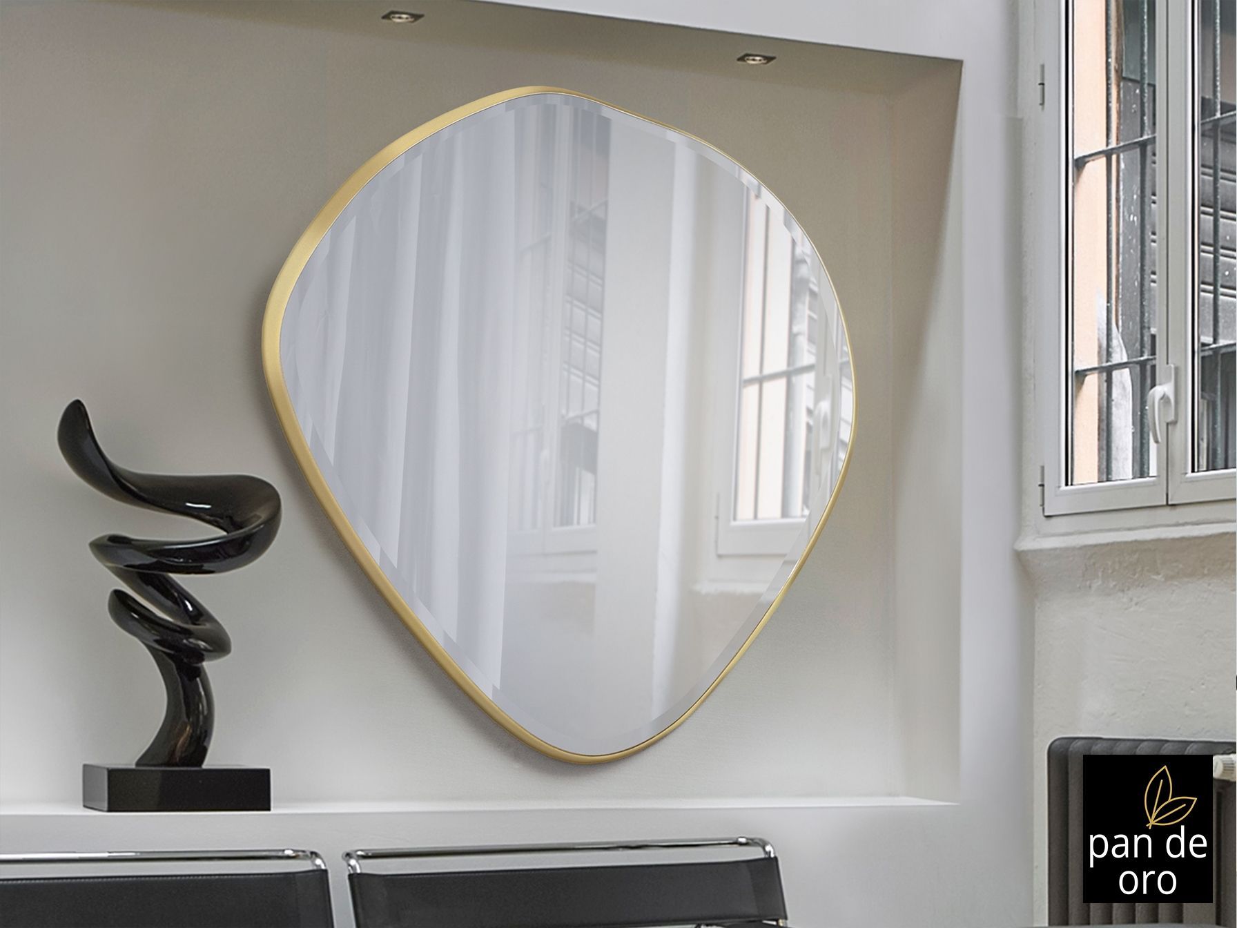 Зеркало неправильной овальной формы, в раме МДФ с отделкой СУСАЛЬНОЕ ЗОЛОТО. Зеркальная пластина с фацетом.