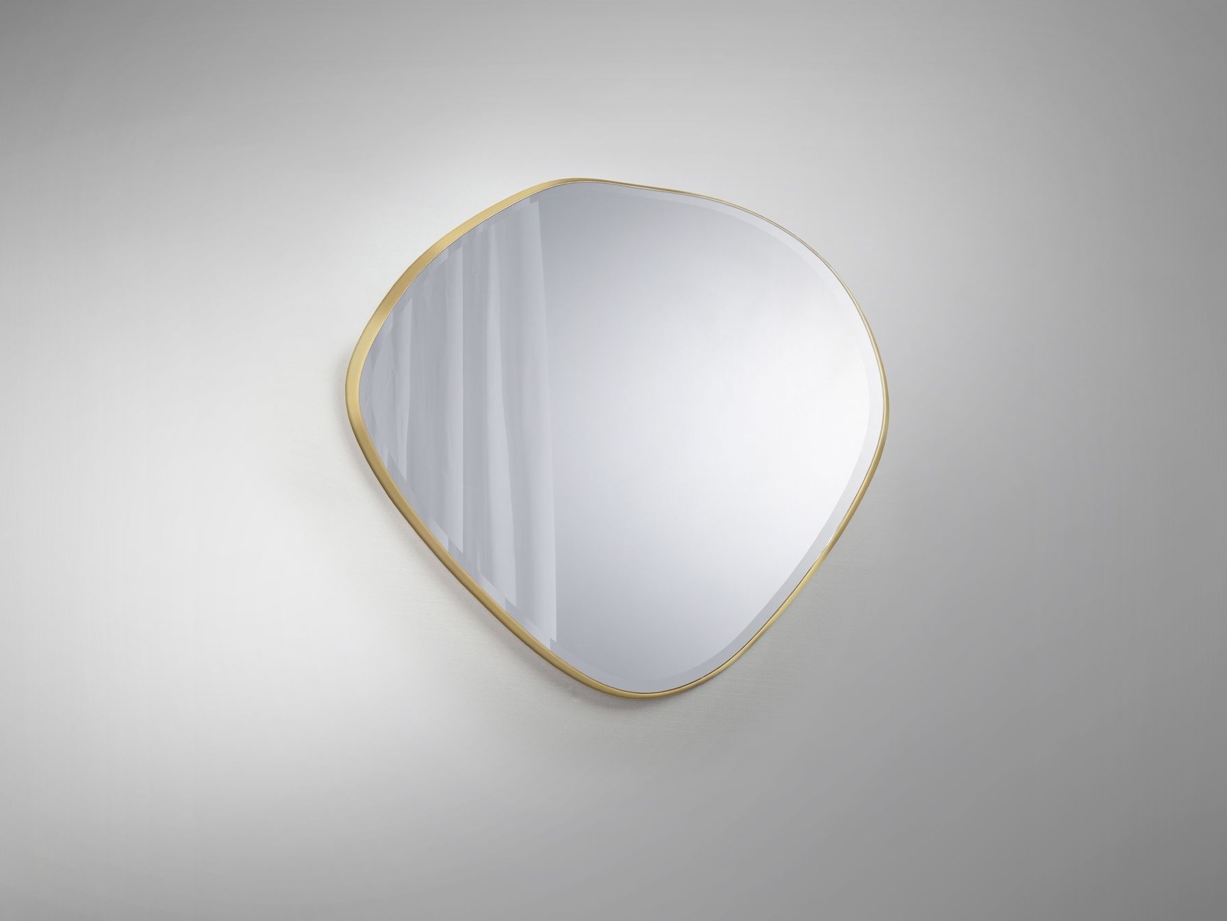 Зеркало неправильной овальной формы, в раме МДФ с отделкой СУСАЛЬНОЕ ЗОЛОТО. Зеркальная пластина с фацетом.
