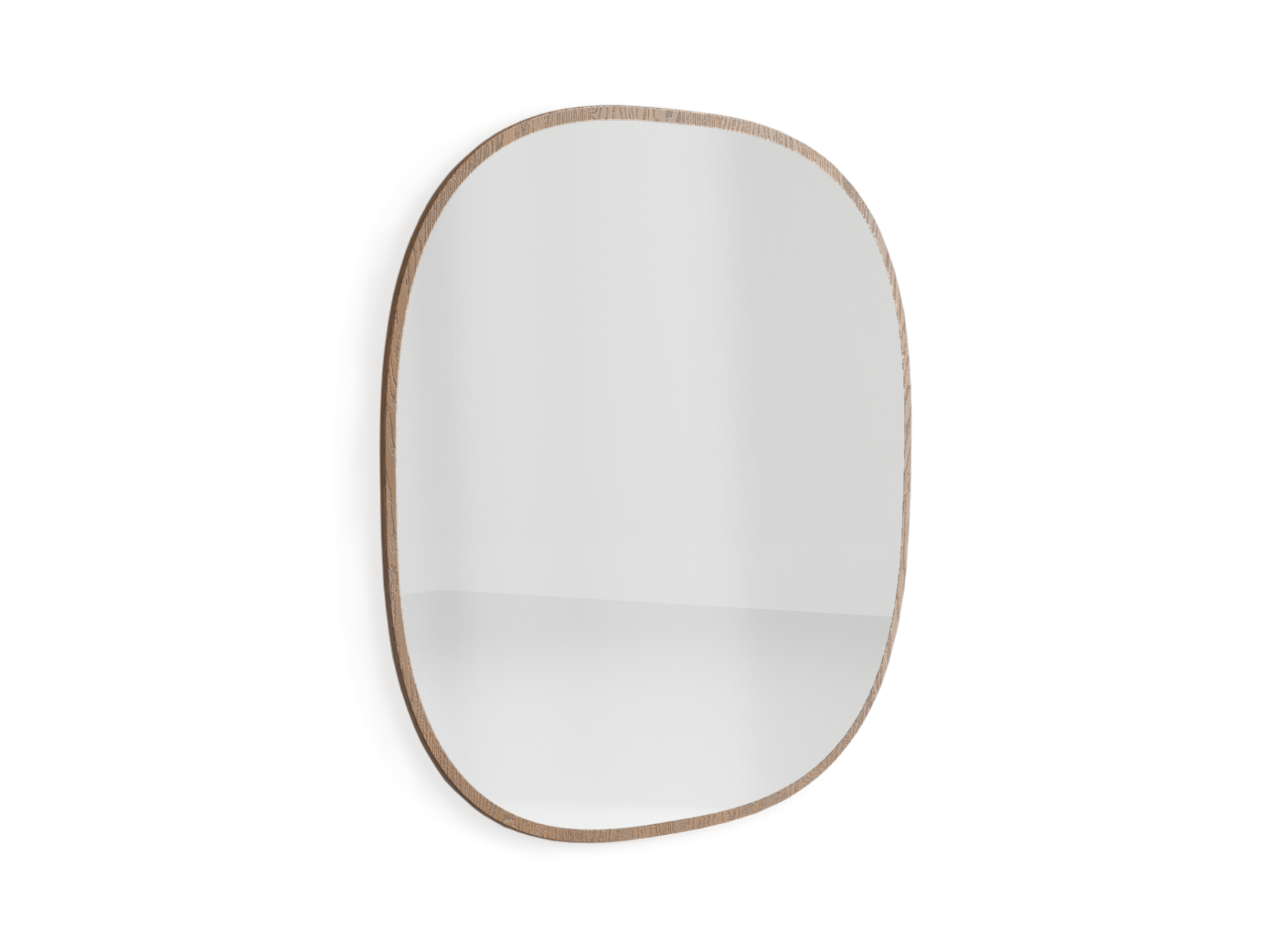 Стильное зеркало гармонично дополнит современный интерьер спальни, гостиной или коридора. Аккуратная рама, обрамляющая зеркало, полностью изготовлена из массива дуба, что делает конструкцию прочной и долговечной. При этом край рамы остаётся утончённым и лаконичным. Натуральные матовые оттенки дуба и округлые формы наполняют пространство красотой природы.