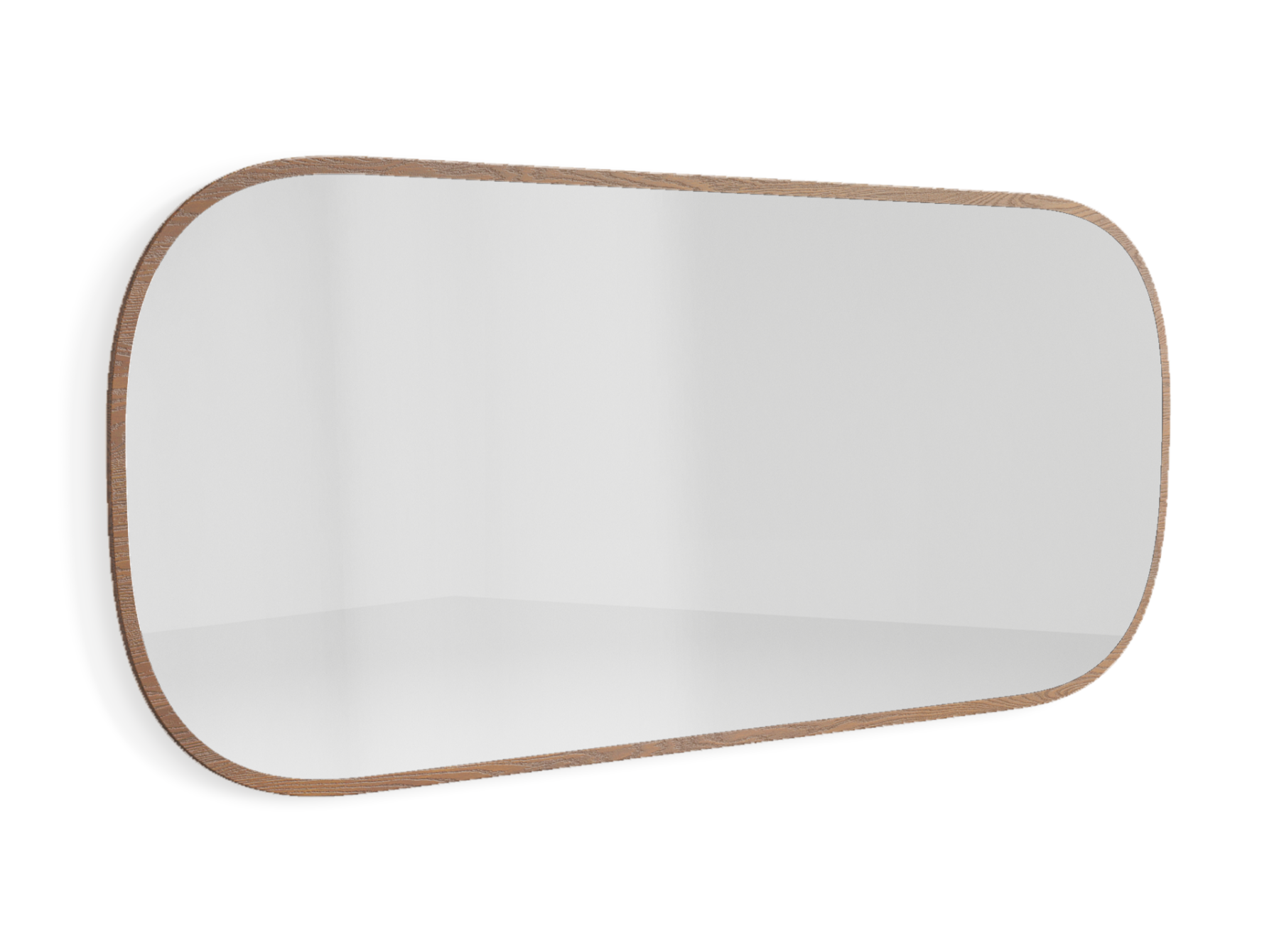 Стильное зеркало гармонично дополнит современный интерьер спальни, гостиной или коридора. Аккуратная рама, обрамляющая зеркало, полностью изготовлена из массива дуба, что делает конструкцию прочной и долговечной. При этом край рамы остаётся утончённым и лаконичным. Натуральные матовые оттенки дуба и округлые формы наполняют пространство красотой природы.