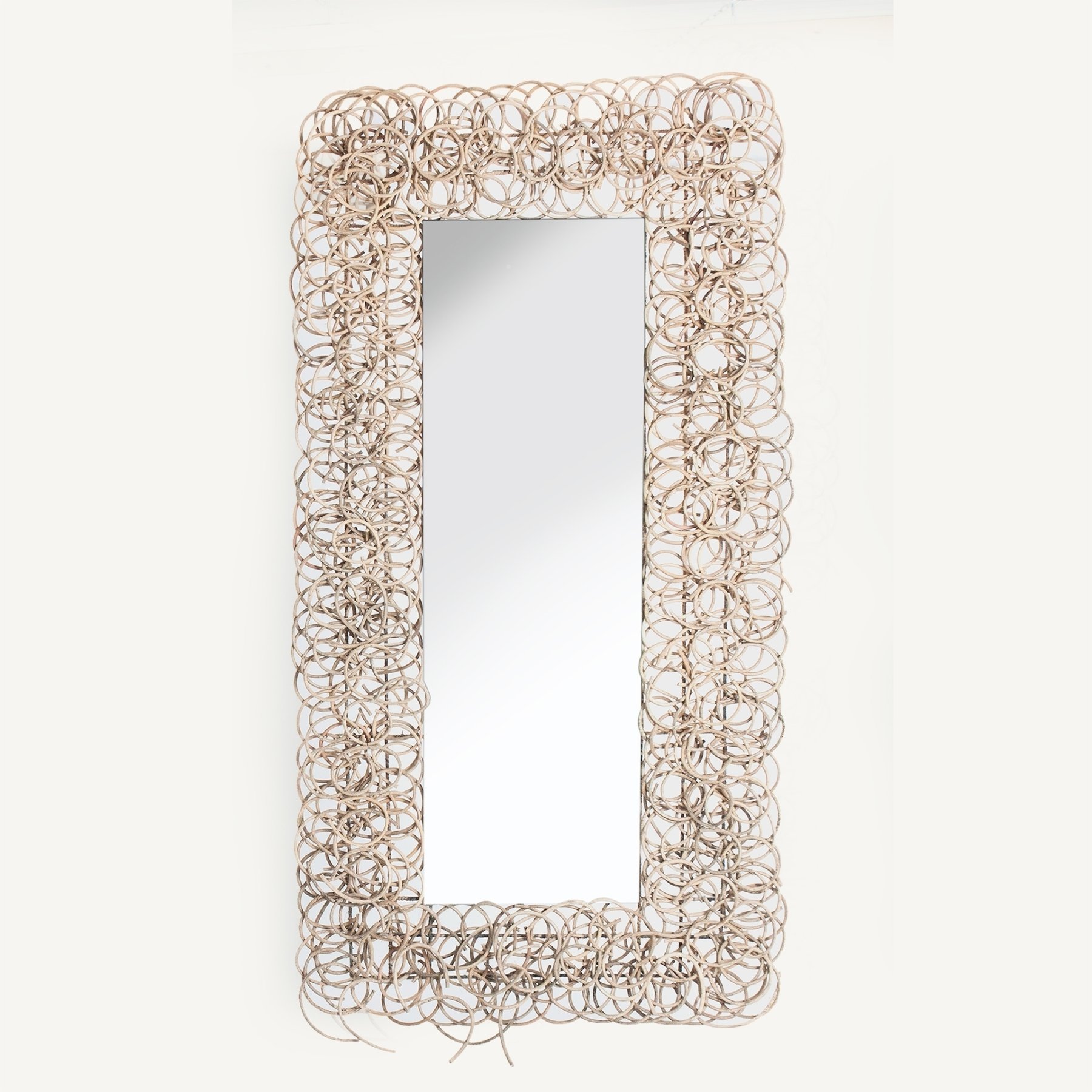 Зеркало прямоугольное, натурального цвета, в стиле контемпорари. Изготовлен из ротанга, в сочетании с зеркалом.