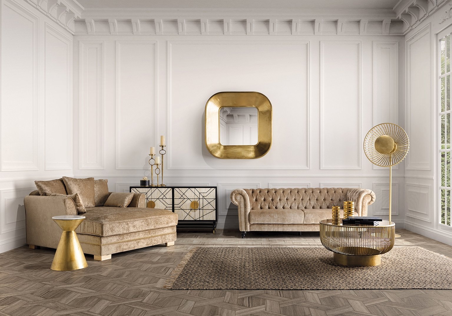 Зеркало Zug квадратное, золотое, в стиле арт-деко. Изготовлен из латуни, в сочетании с зеркалом.