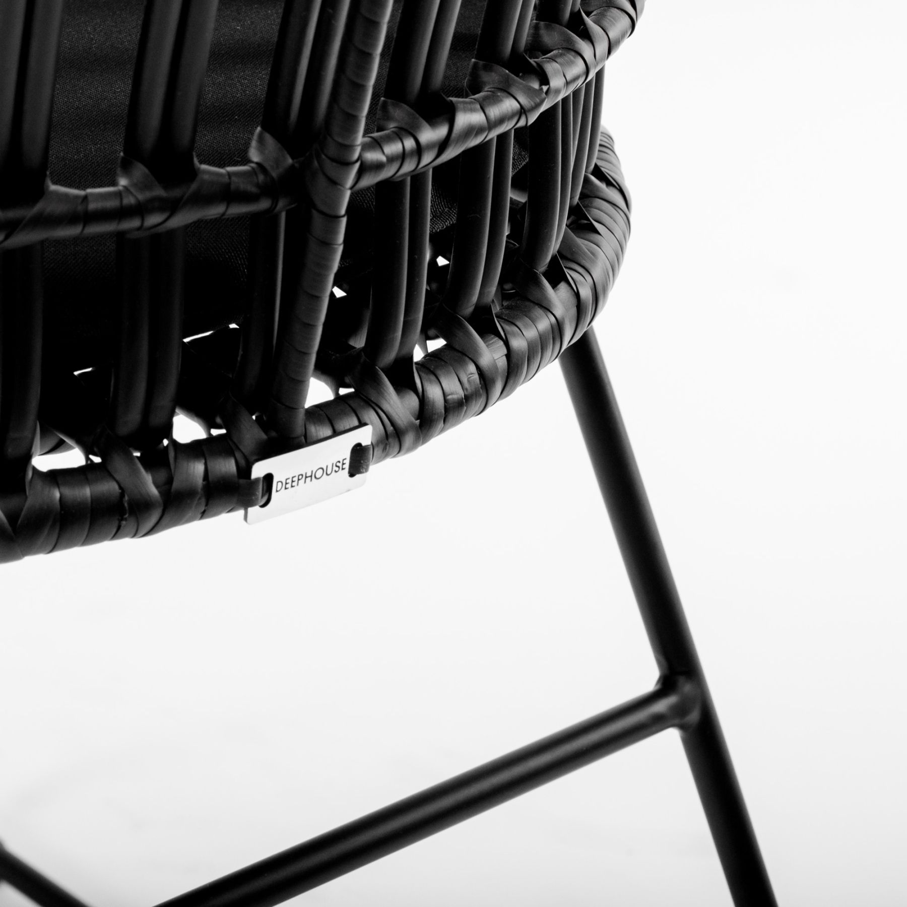 Филигранность достигается благодаря плетеному каркасу из искусственного ротанга, который пропускает пространство сквозь себя.