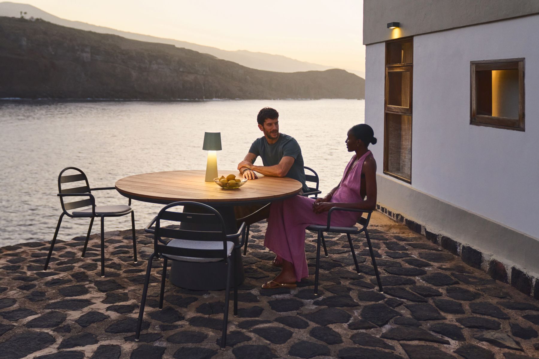 Стул Joncols удивляет своим исполнением. Созданный только из алюминия, он демонстрирует оригинальную форму и необычное реечное сиденье. Такая модель рассчитана на стильные открытые пространства, где современность и тенденции диктуют формат всей обстановки. И не переживайте о плохой погоде – алюминий защищен от солнца и дождя.