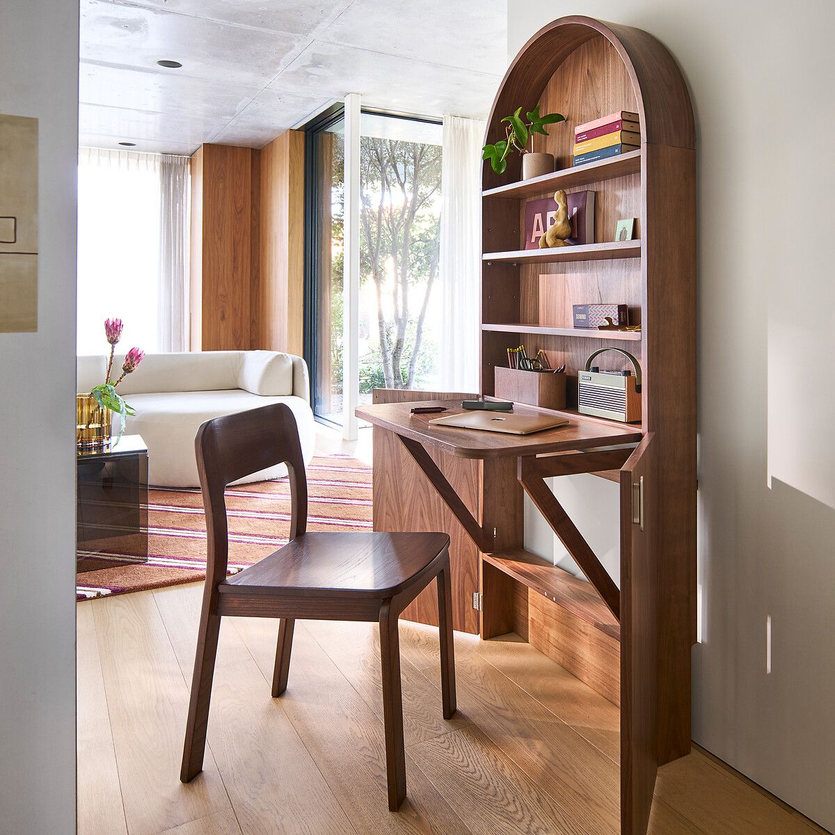 — Каркас из массива вяза, окрашенного нитроцеллюлозным лаком под орех