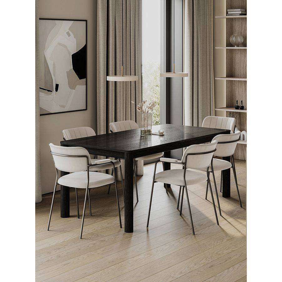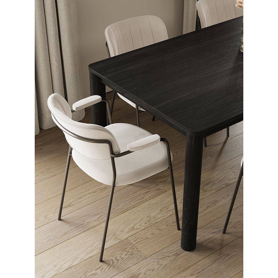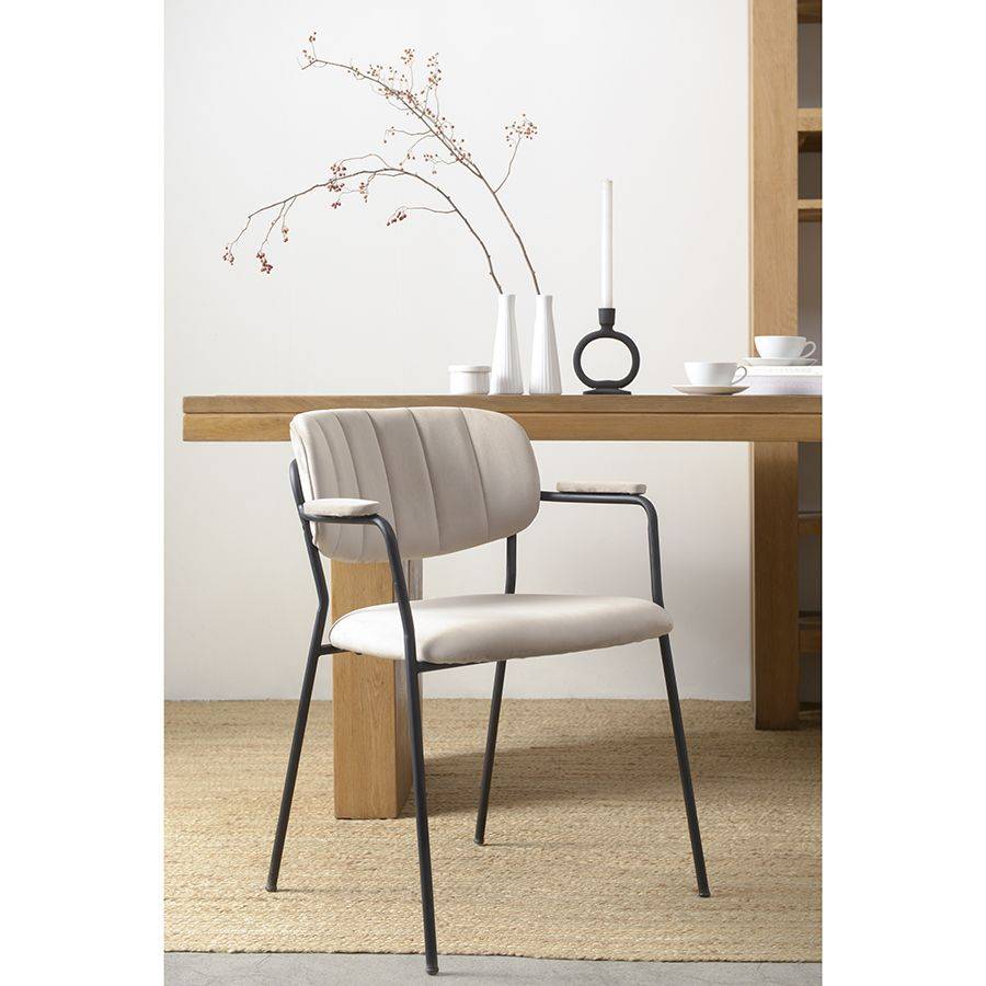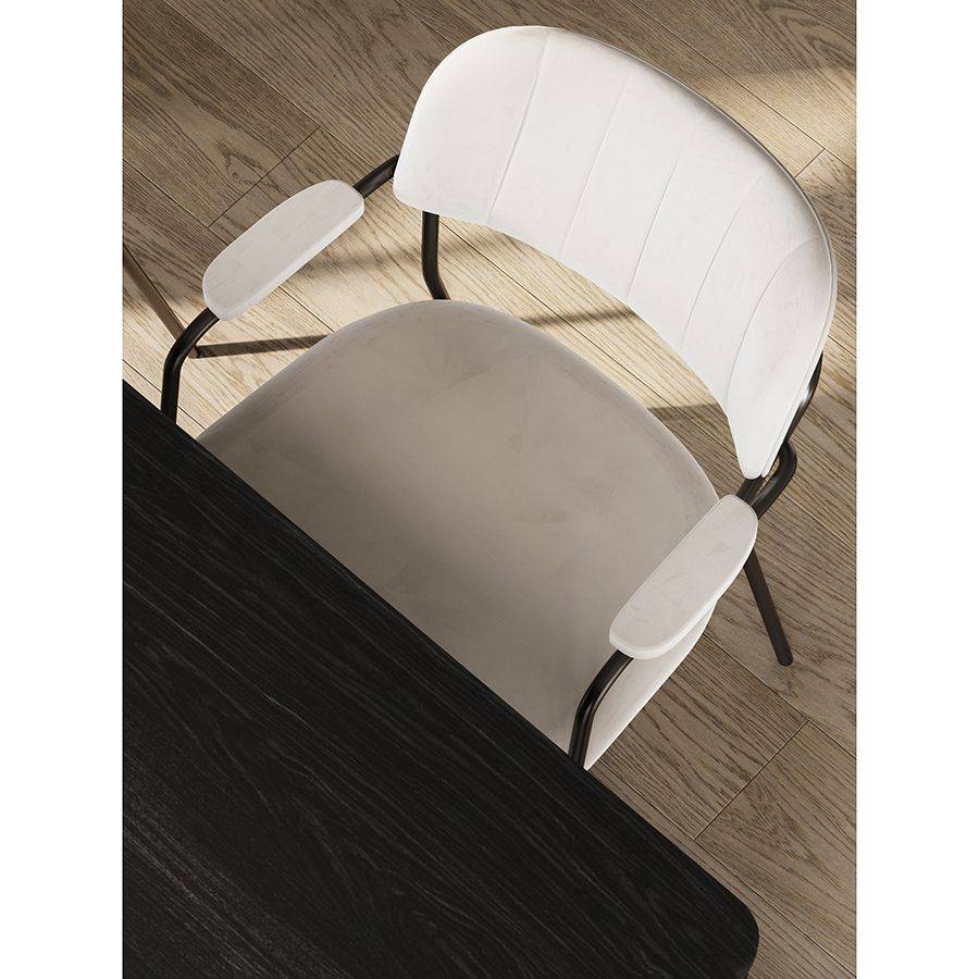 Кресло Eirill с обивкой из гладкого велюра смотрится стильно и благородно. Материал приятный на ощупь и простой в уходе. Комфорт при сидении достигается за счет широкой спинки, глубокой посадки и высоких подлокотников с мягкими накладками. Светлая мебель с лаконичным силуэтом идеально вписывается в интерьер, оформленный в скандинавском стиле, эклектика, фьюжн, неоклассика и др.
