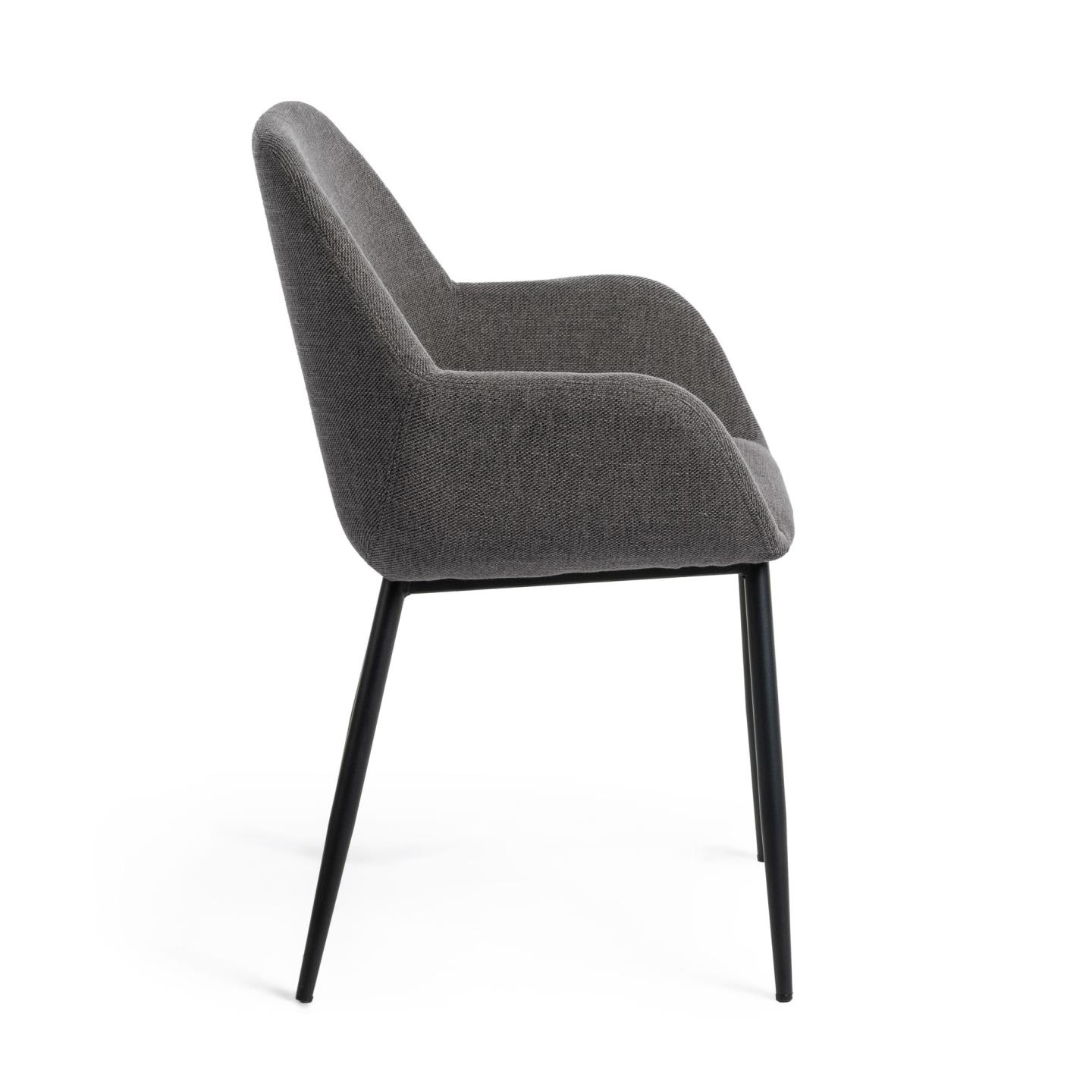 Кресло Konna из одноименной коллекции от фабрики La Forma (ex Julia Grup). Кресло завораживает своей простотой и изяществом. Здесь взгляд останавливает не буйство красок и элементов декора, а продуманная функциональность и универсальный дизайн. Любители урбанистического стиля без излишеств, этот стул для вас. Чтобы поставить эту модель в квартиру, не навредив интерьеру, придумывать ничего не нужно. Стул прекрасно впишется в гостиную, выполненную в современном европейском стиле, где главное правило — стиль и функциональность. Универсальная цветовая гамма — это еще один плюс к тому, что изделие лаконично встанет в помещении с любым цветом интерьера. Конструкция проста до предела — это цельное сиденье, состоящее из спинки, бортиков и подушки, и металлический каркас из четырех ножек, обеспечивающий прочность и устойчивость. Ножки окрашены порошковой краской в черный цвет. Несмотря на «тяжесть» материала изготовления, их форма изящная и абсолютно не придает изделию громоздкий вид. Материал обивки сиденья — прочный текстиль.Эта ткань обладает высокой степенью износостойкости и приятная на ощупь (при чистке использование отбеливателей и абразивных веществ запрещено). Размеры — 59 см×83 см×52 см (ширина, высота, глубина). Вес — 6,6 кг. В коллекции Konna эта модель представлена в четырех цветах: темно-сером, горчичном, голубом и сером цветах.
