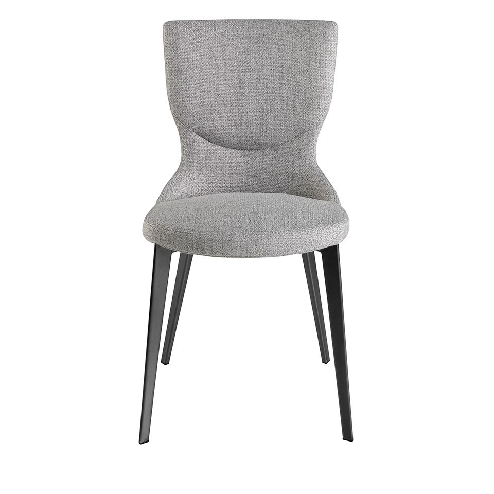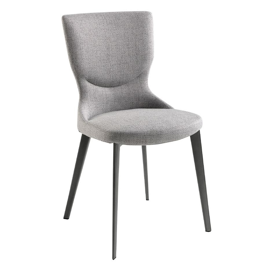 Кресло современного дизайна с сиденьем и спинкой, обитое серой тканью. Его антрацитовые серые металлические ножки из нержавеющей стали с авангардным, но вневременным стилем сделают его обязательным для вашей кухни или столовой.