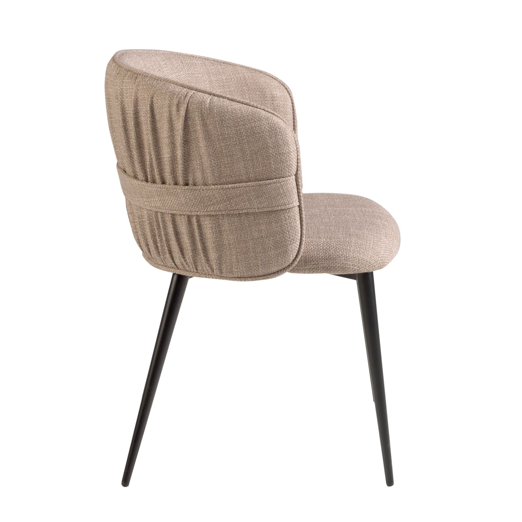 Кресло современного дизайна с сиденьем и спинкой, обитоеной коричневой тканью. Его матовые черные ножки из нержавеющей стали с авангардным, но вневременным стилем сделают его обязательным для вашей кухни или столовой.