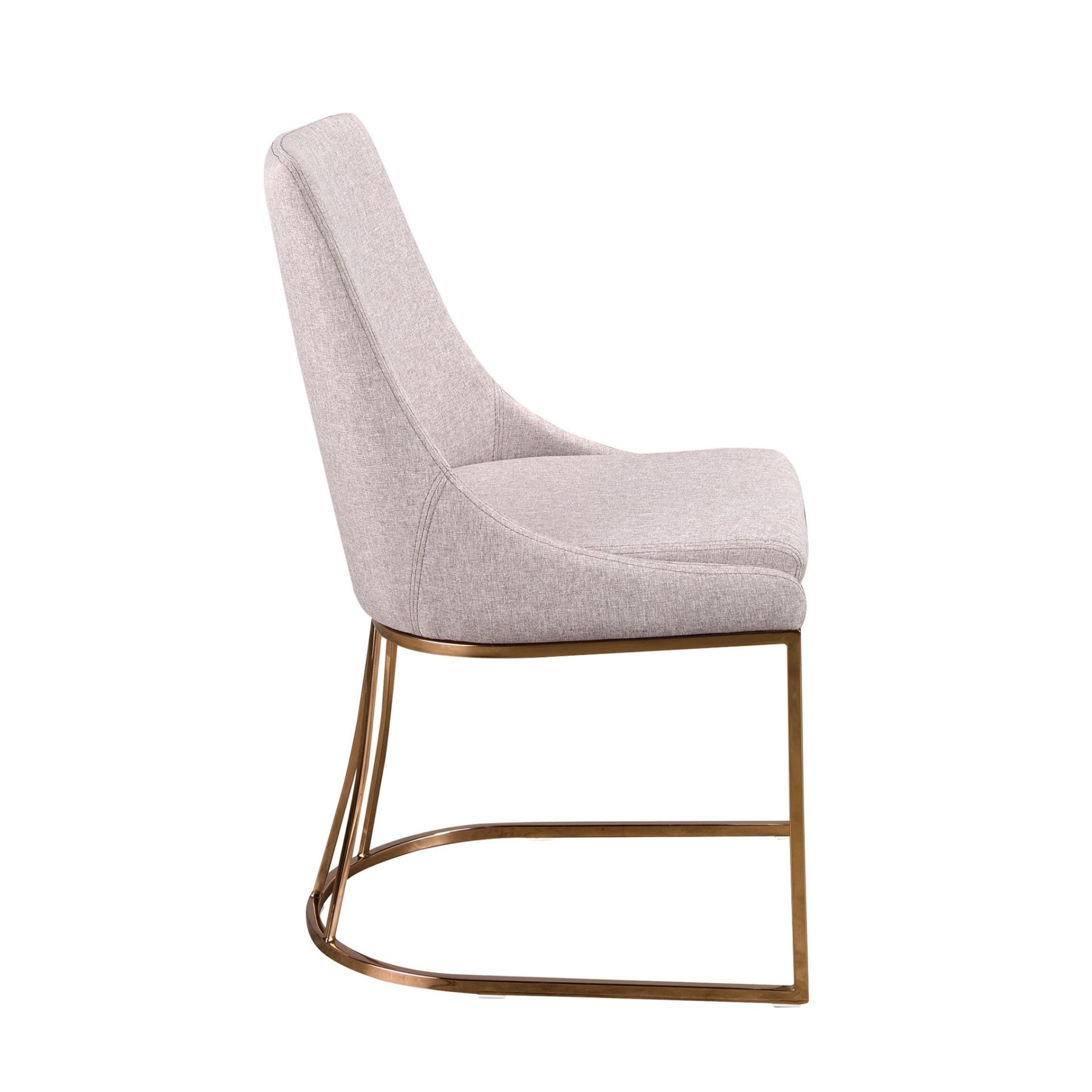 Стул современного дизайна с сиденьем и спинкой, обитыми серой тканью. Хромированные ножки из нержавеющей стали цвета розового золота, выполненные в авангардном, но вневременном стиле, сделают его обязательным атрибутом вашей кухни или столовой. Этот стул от Angel Cerdá сочетает в себе уникальный и индивидуальный стиль бренда, а также высочайший комфорт и устойчивость, благодаря высокому качеству обивки и оригинальной конструкции ножек.