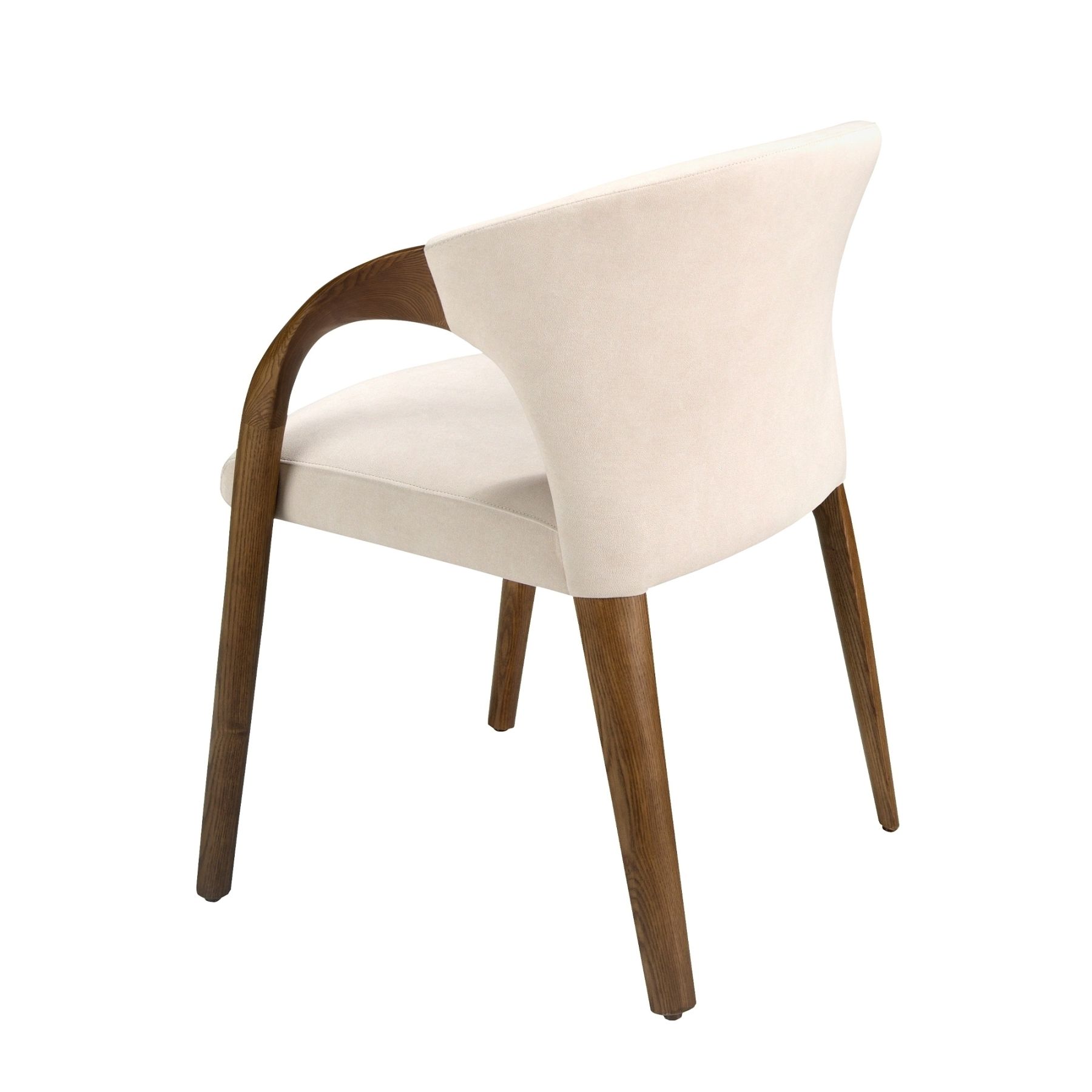 Стул с подлокотниками в современном дизайне с сиденьем и спинкой, обитыми бархатистой кремовой тканью. Его деревянные ножки цвета ореха в авангардном, но вневременном стиле сделают его обязательным для вашей кухни или столовой. Этот стул от Angel Cerdá сочетает в себе уникальный и индивидуальный стиль бренда, а также высочайший комфорт и устойчивость благодаря высокому качеству обивки и оригинальной конструкции ножек.