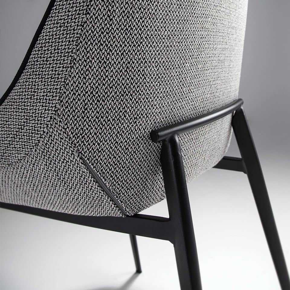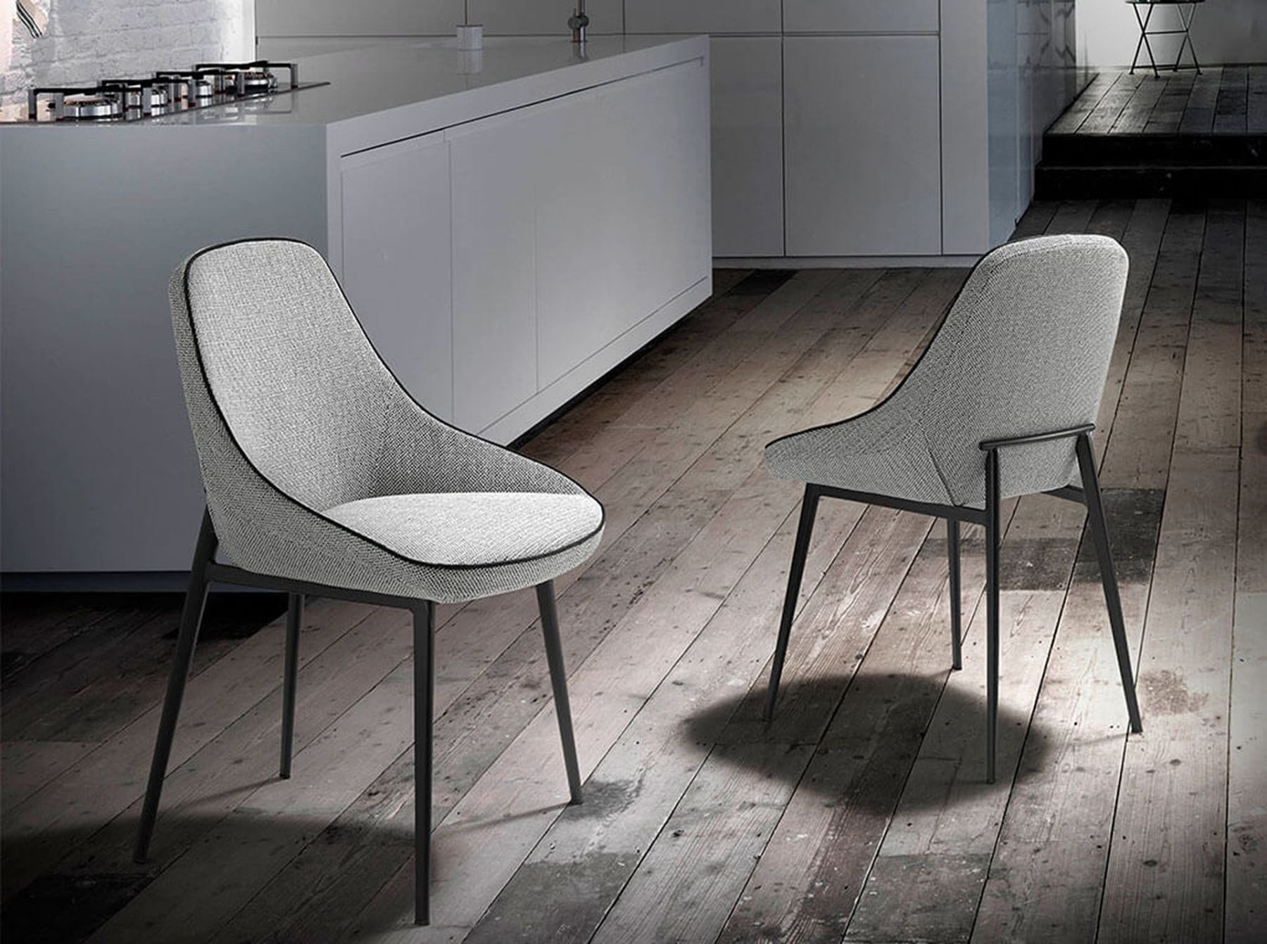 Стул для столовой обтянут тканью, наполненной пенополиуретаном плотностью 25 кг / м3. Конструкция ножек выполнена из стали, окрашенной в черную эпоксидную краску.