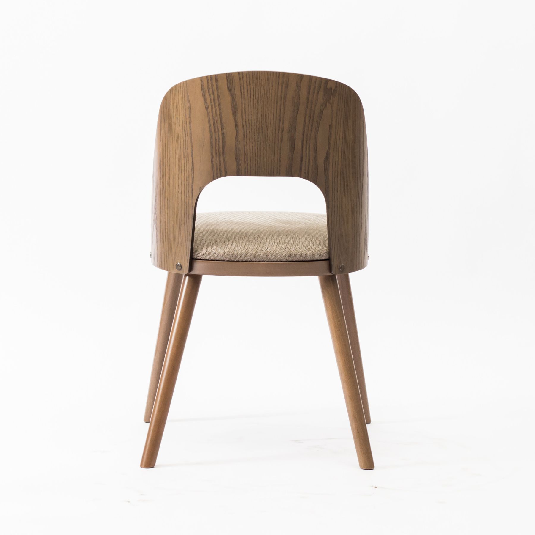 Цветовое решение этого дизайнерского стула Антверпен расширяет горизонт его сочетаемости с разными стилями интерьера. Деревянные ножки и задняя спинка покрыты под аристократический орех (дерево гевея). Таким образом, данная модель будет уместна в классическом рабочем кабинете или комнате для переговоров. Серая тканевая обивка сидения немного одомашнивает стул Антверпен и делает его пригодным для уютного кафе или гостиной.
