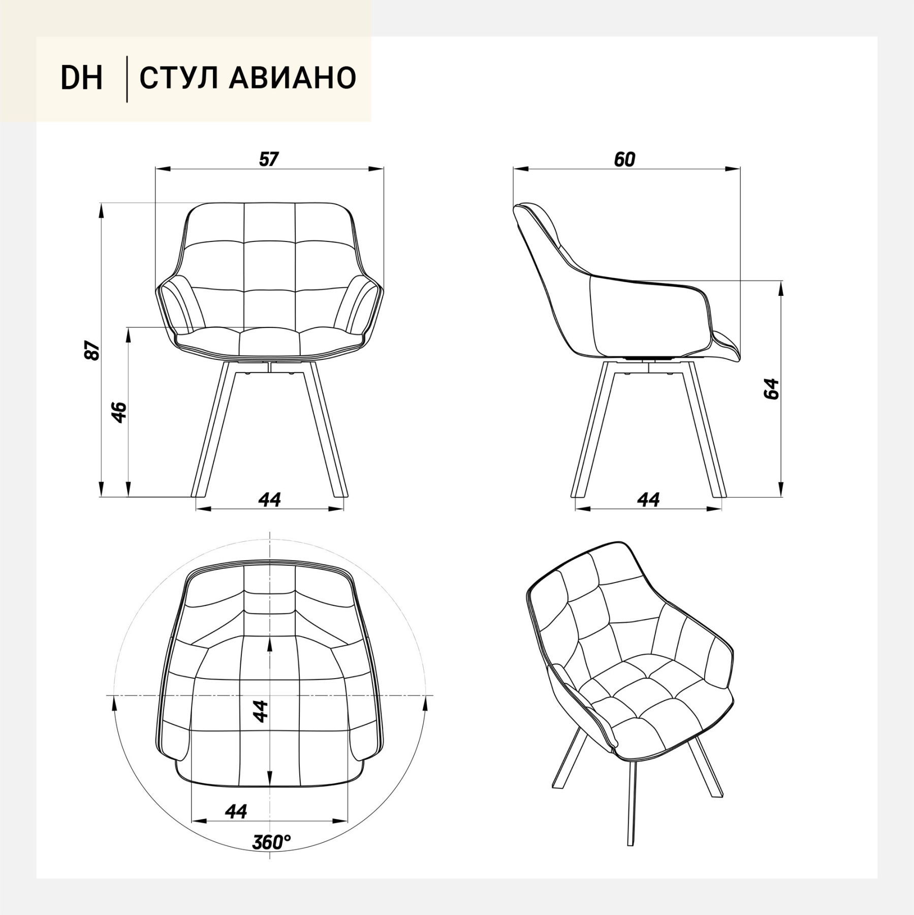 Мягкий вращающийся стул Авиано от DeepHouse- современный, стильный предмет интерьера, который подойдет в самые различные помещения. В спальне, гостиной или на кухне, он везде будет красиво и эффектно смотреться. Вместительное сиденье с высокой спинкой и небольшими, удобными подлокотниками оснащено поворотным механизмом. Стул вращается на 360 градусов, без автоматического возврата. Просторный и эффектный стул Авиано имеет сравнительно небольшие габариты. Изготавливается в нескольких вариантах обивки - нежный бархат или мягкий экомех.