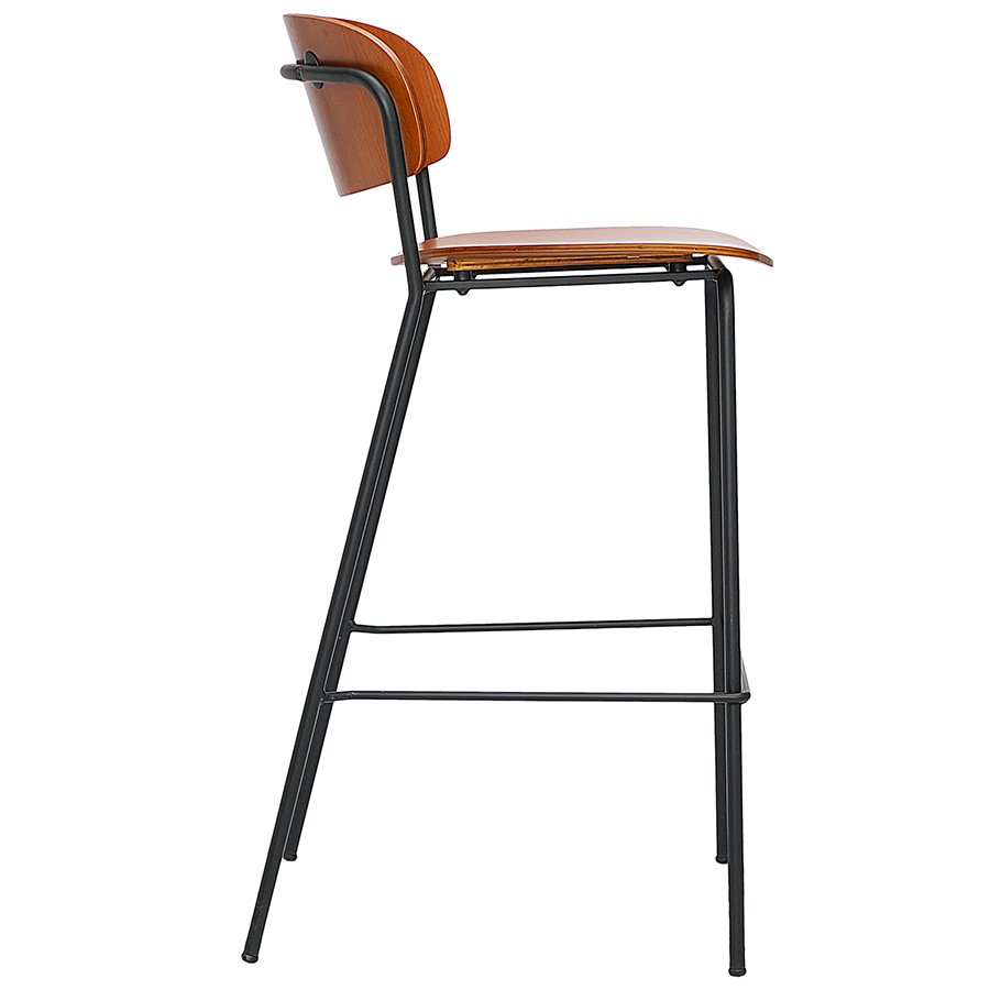 Материалы: фанера, шпон ясеня, железо. Высота сиденья: 72 см. Ширина сиденья: 43,5 см. Глубина сиденья: 40,5 см. Высота спинки: 28,5 см. Ширина спинки: 46 см. Высота подножки: 29 см. Максимальная нагрузка: 120 кг. Цвет: орех.