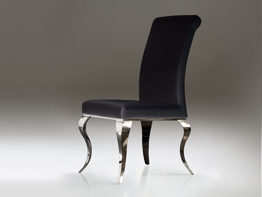 Стул из нержавеющей стали, обивка из искусственной кожи чёрного цвета..