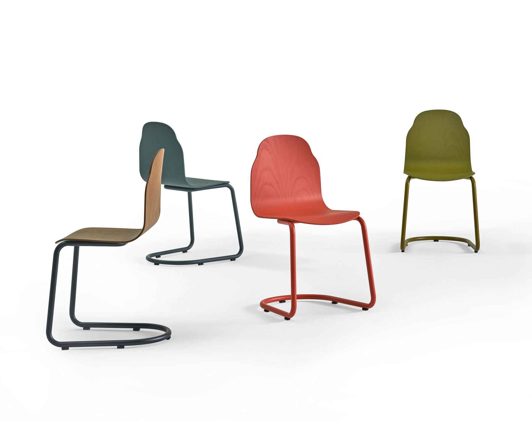 Это определяет целую программу сидений, уникальная конструкция которых может включать различные типы ножек. Два новых основания, консольные или с обитыми ножками, добавляют еще больше возможностей этому нашему самому универсальному стулу.