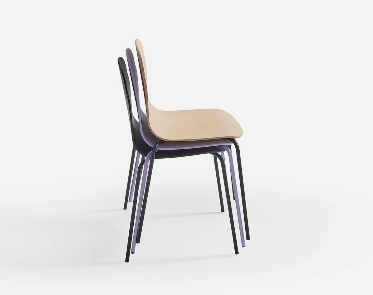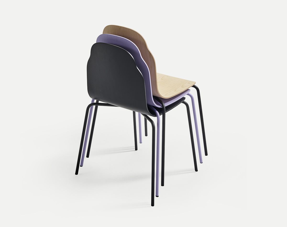Его универсальность также определяется его опциями. Есть металлическая версия, которую можно штабелировать, другая — на колесиках или деревянных ножках. К стульям с четырьмя ножками можно добавить подлокотники. Все металлические ножки и ручки могут быть окрашены в разные цвета.