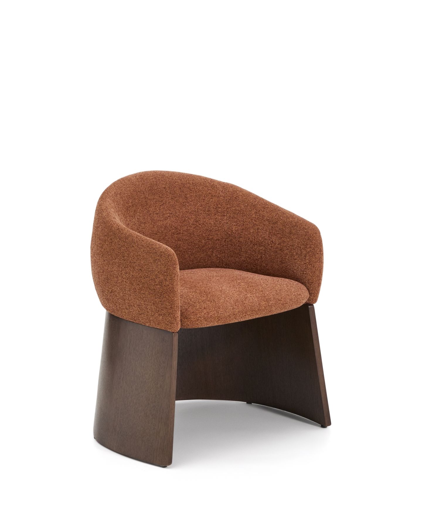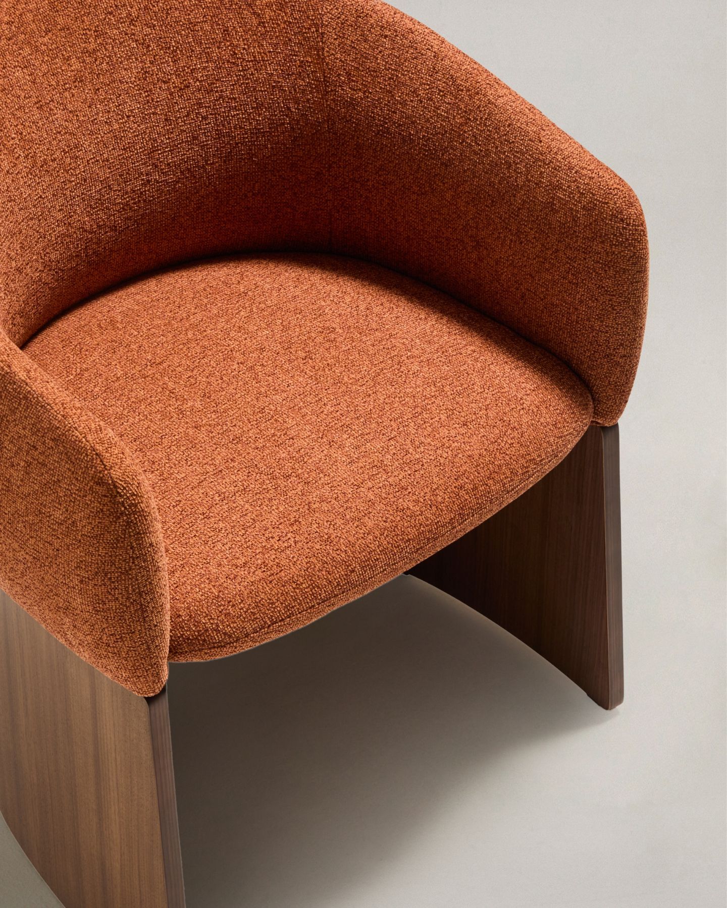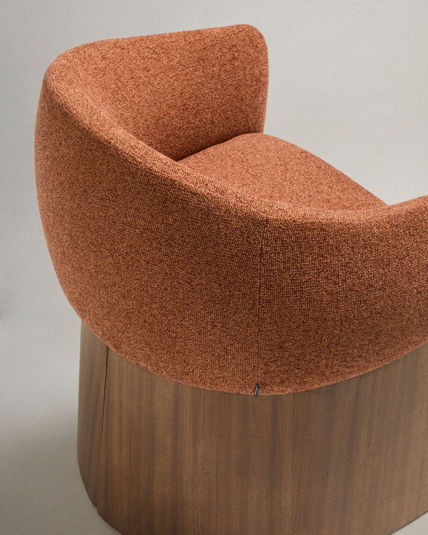Этот стул отличается сбалансированным дизайном: широкое, удобное сиденье опирается на деревянное основание, покрытое ореховым шпоном. Матовое полиуретановое покрытие защищает поверхность и придает изделию теплоту. Древесина сертифицирована по системе FSC™ 100% и соответствует модели ответственного лесоуправления. Обивка выполнена из мелкоструктурного шенилла: мягкого на ощупь, прочного и долговечного, изготовленного из 100% переработанного полиэстера от поставщика, сертифицированного по Глобальному стандарту переработки.