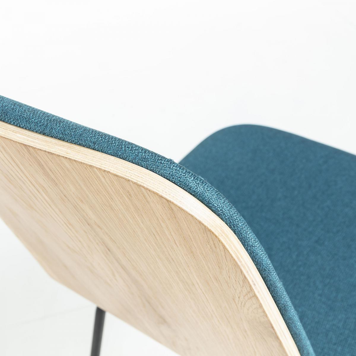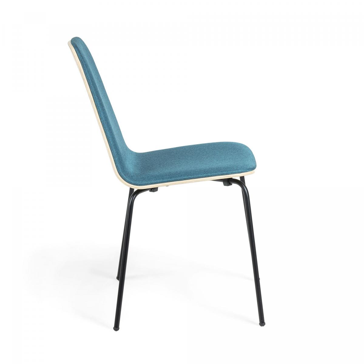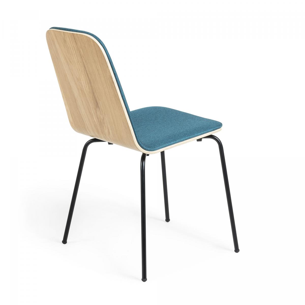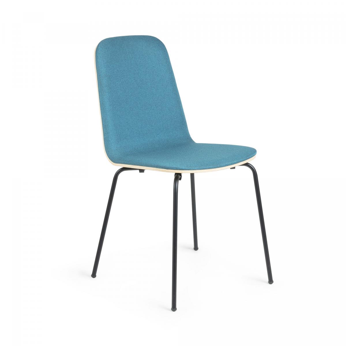 Форма стула традиционная — цельное сиденье со слегка отведенной назад закругленной спинкой и металлическая опора с четырьмя ножками. Каркас выполнен из толстой фанеры. Этот материал прочный и, при этом, легкий. Поэтому стул легко будет просто переставлять с места на место.