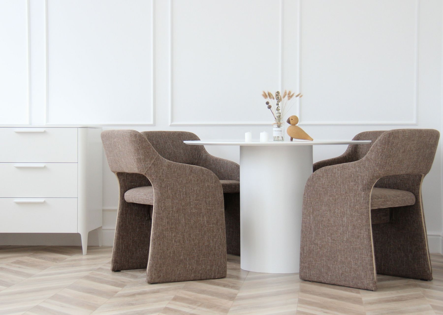 Комфортный мягкий стул в тканевой обивке дополнит интерьер гостиной или спальни