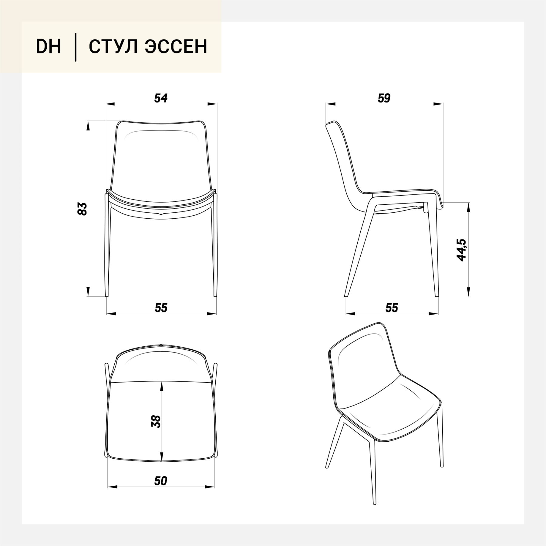 Строгий и колоритный стул Эссен без подлокотников покорит вас не только своими внешними свойствами, но также эргономичностью и практичностью. Стул обит гладкой экокожей, которая легка в уходе. Необычные изгибы стула отлично поддерживают тело сидящего человека в удобном положении, а утонченные металлические подлокотники придают дополнительный комфорт и внешнюю привлекательность данному предмету мебели. Стул Эссен в наличии в нескольких оттенках. Его габариты: Ширина 58 см. Высота 85 см. Глубина 59,5 см. Высота сиденья 45 см. Вес 10,2 кг.