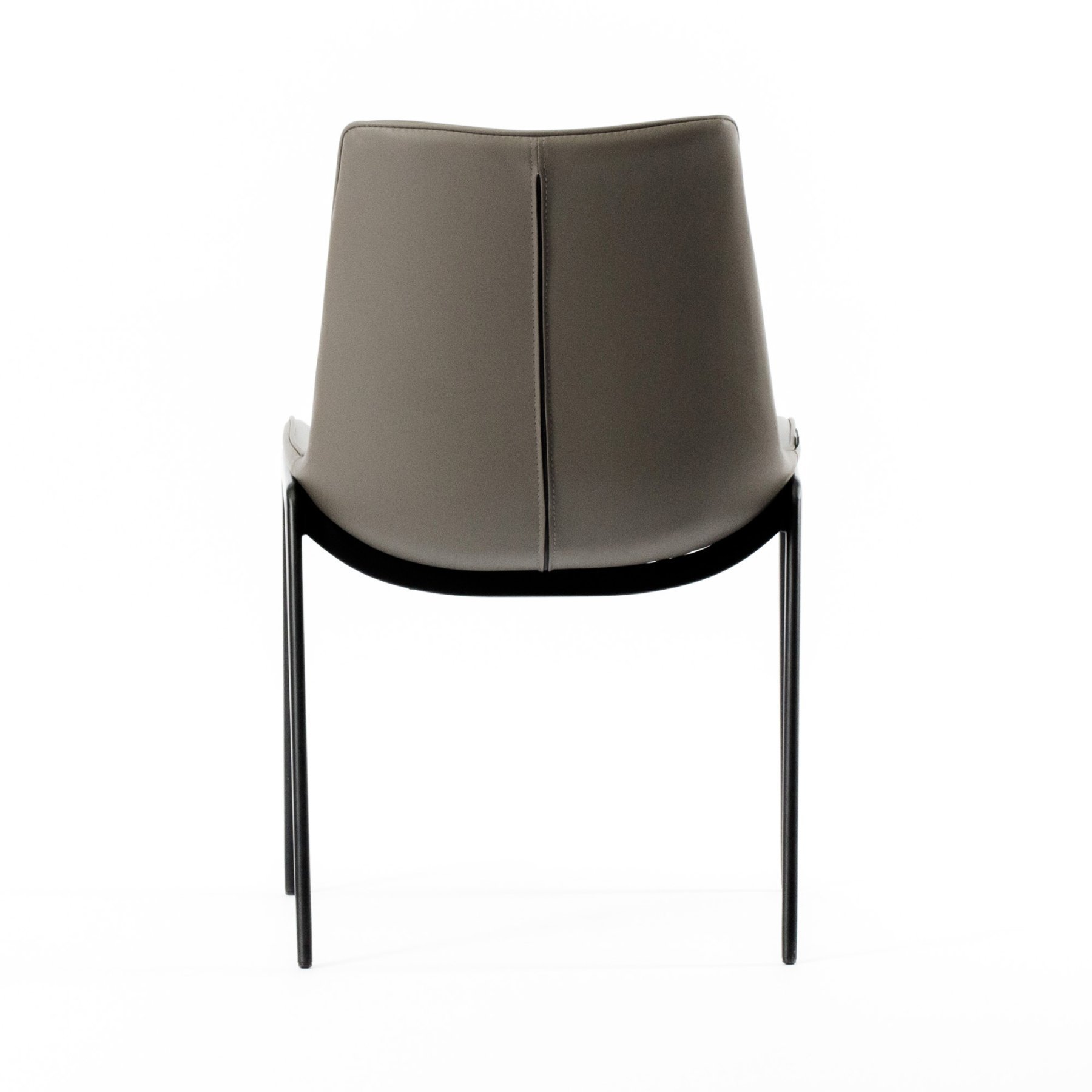 Строгий и колоритный стул Эссен без подлокотников покорит вас не только своими внешними свойствами, но также эргономичностью и практичностью. Стул обит гладкой экокожей, которая легка в уходе. Необычные изгибы стула отлично поддерживают тело сидящего человека в удобном положении, а утонченные металлические подлокотники придают дополнительный комфорт и внешнюю привлекательность данному предмету мебели. Стул Эссен в наличии в нескольких оттенках. Его габариты: Ширина 58 см. Высота 85 см. Глубина 59,5 см. Высота сиденья 45 см. Вес 10,2 кг.