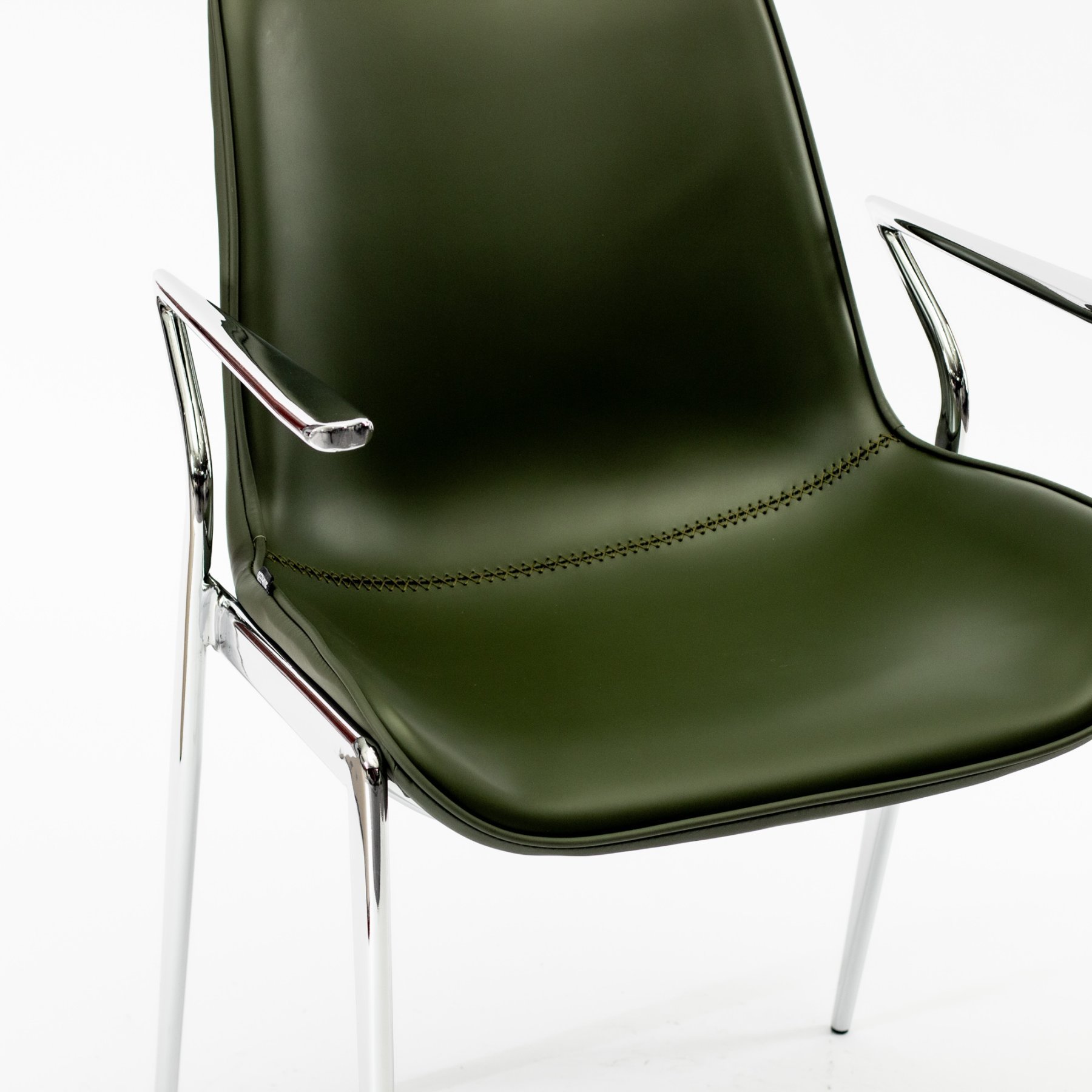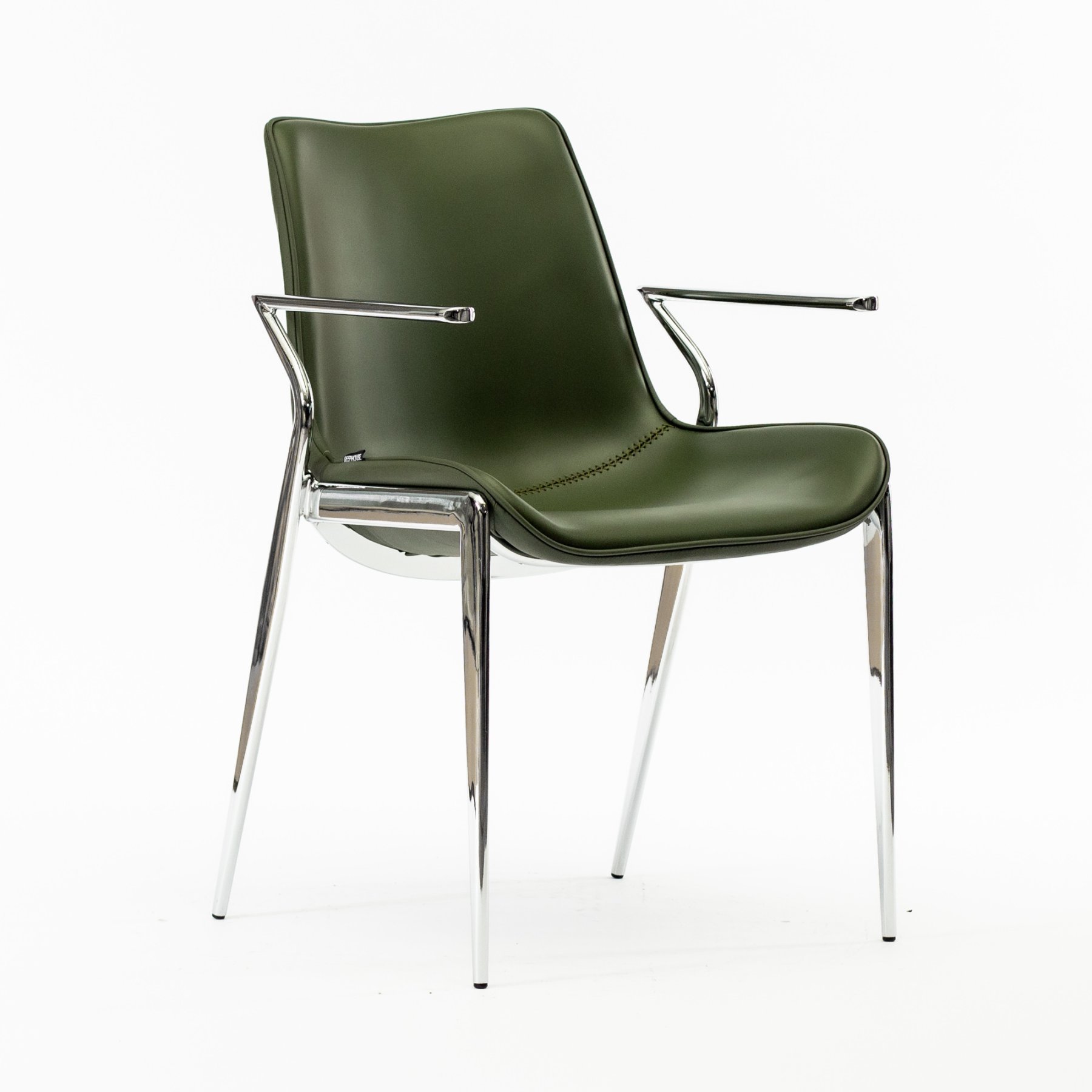 Строгий и колоритный стул Эссен покорит вас не только своими внешними свойствами, но также эргономичностью и практичностью. Стул обит гладкой экокожей, которая легка в уходе. Необычные изгибы стула отлично поддерживают тело сидящего человека в удобном положении, а утонченные металлические подлокотники придают дополнительный комфорт и внешнюю привлекательность данному предмету мебели. Стул Эссен в наличии в нескольких оттенках. Его габариты: Ширина 58 см. Высота 85 см. Глубина 59,5 см. Высота сиденья 45 см. Вес 10,2 кг.