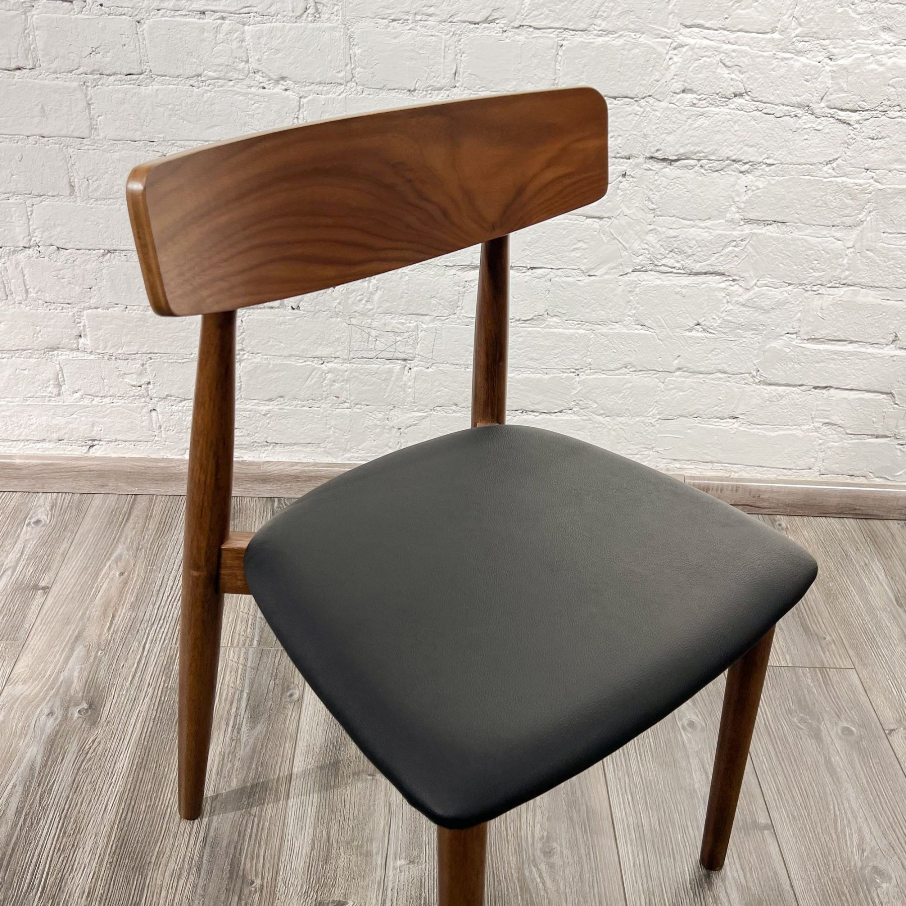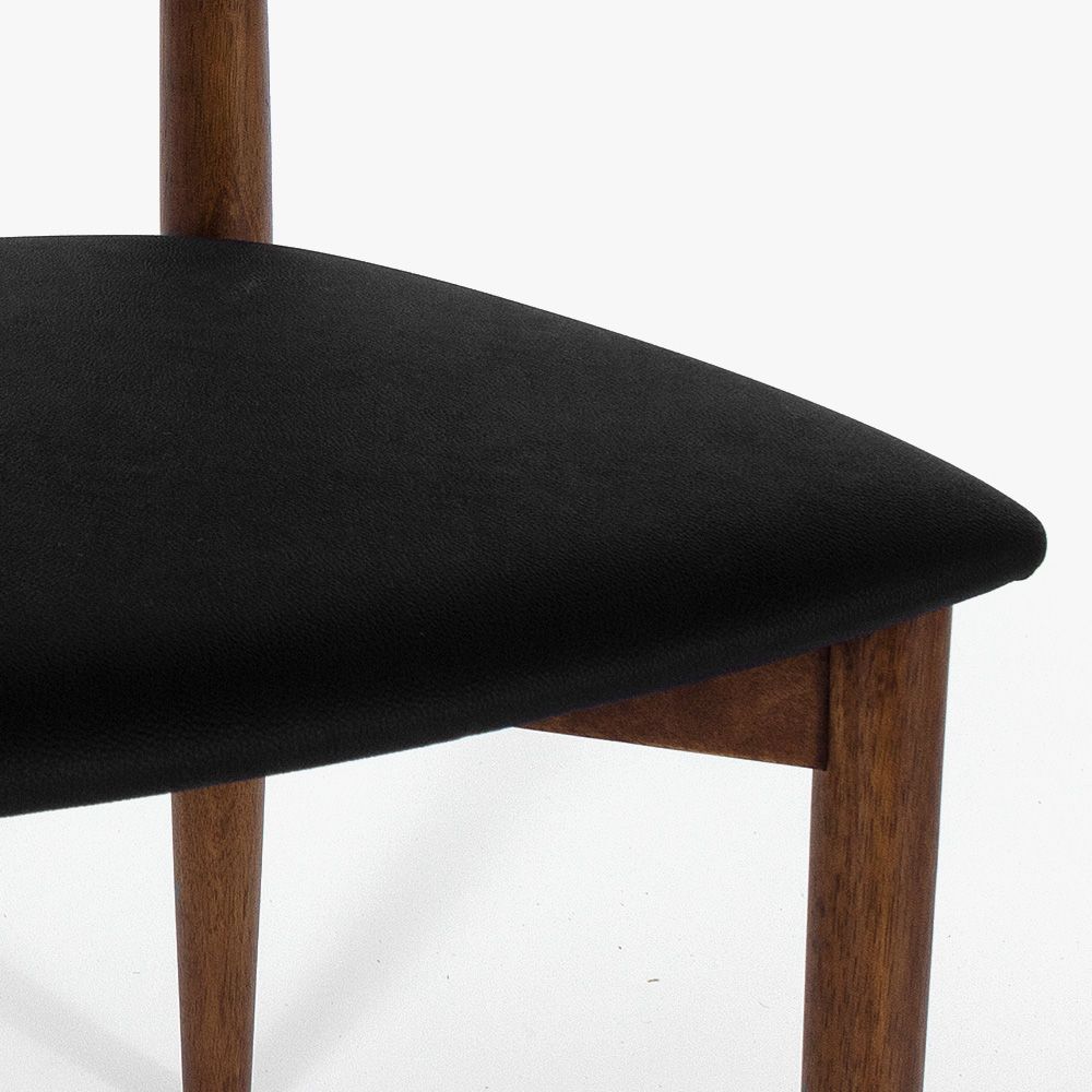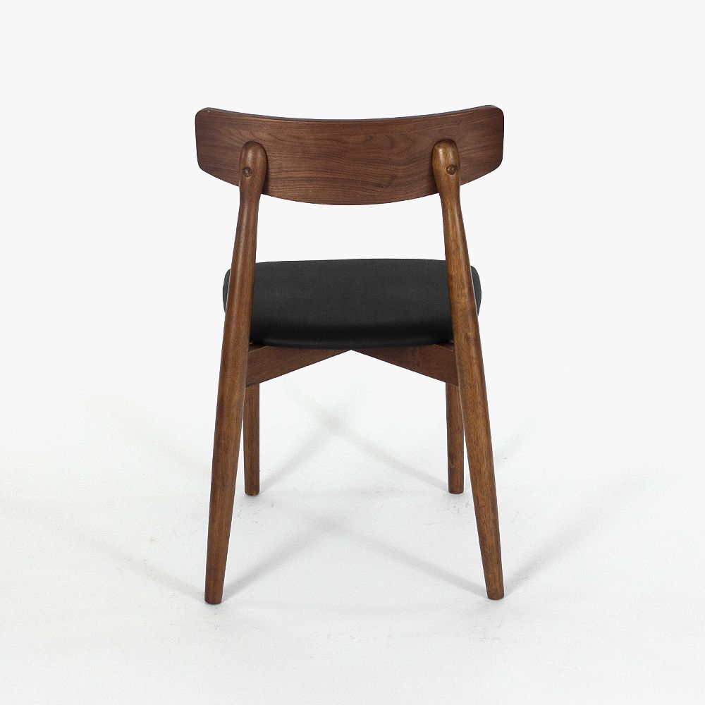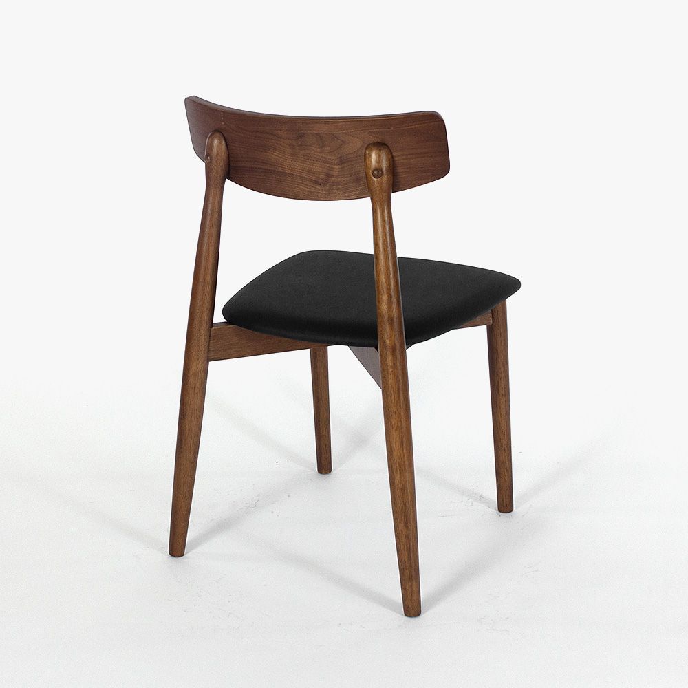 Дизайнерская разработка знаменитого датского художника Кая Кристиансена. Этот удивительно элегантный стул для жилых и коммерческих помещений сочетает в себе классический и современный материалы. Ножки и основание выполнены из натурального дерева, а спинка и сидение обиты экокожей благородного черного цвета. В результате создан неповторимый предмет интерьера.