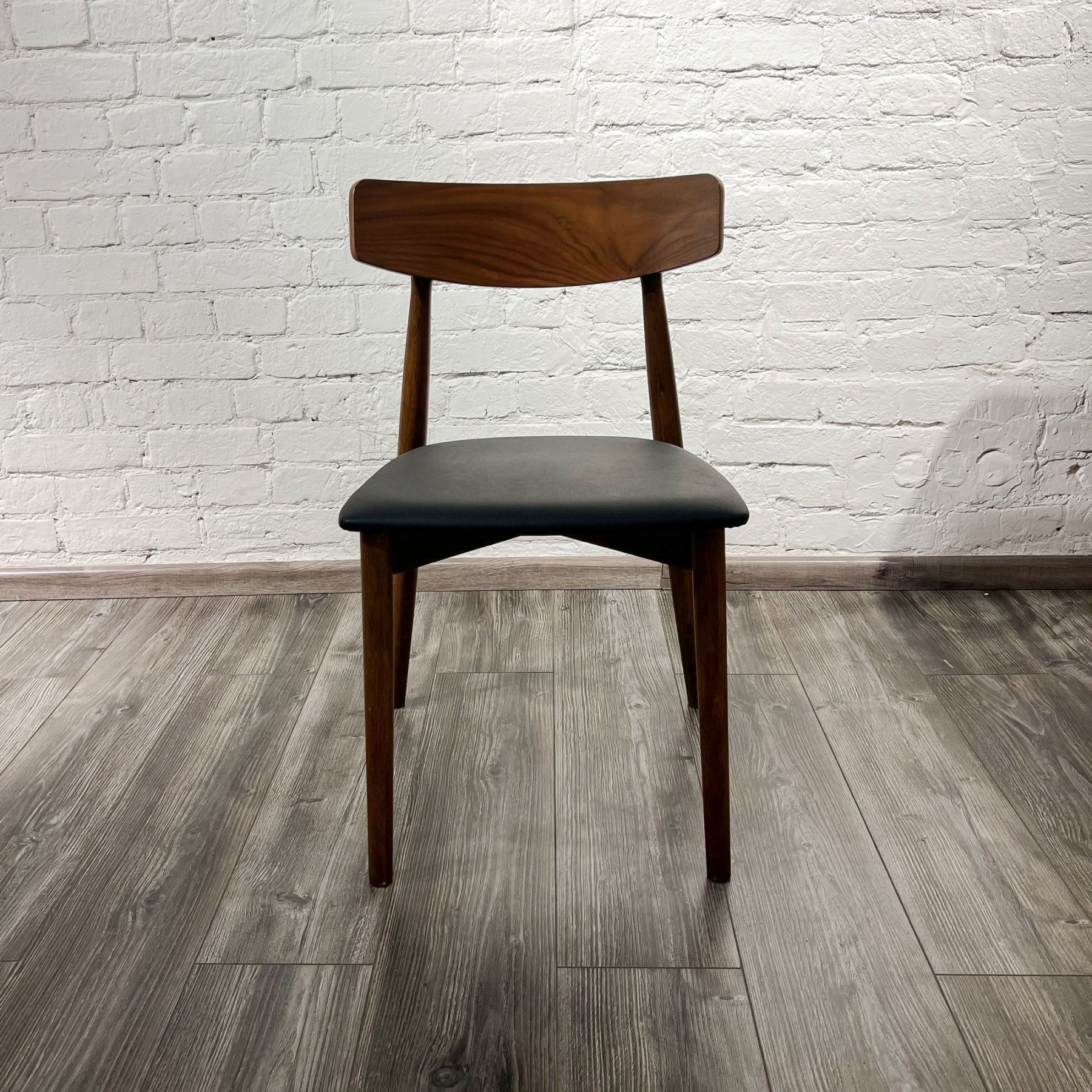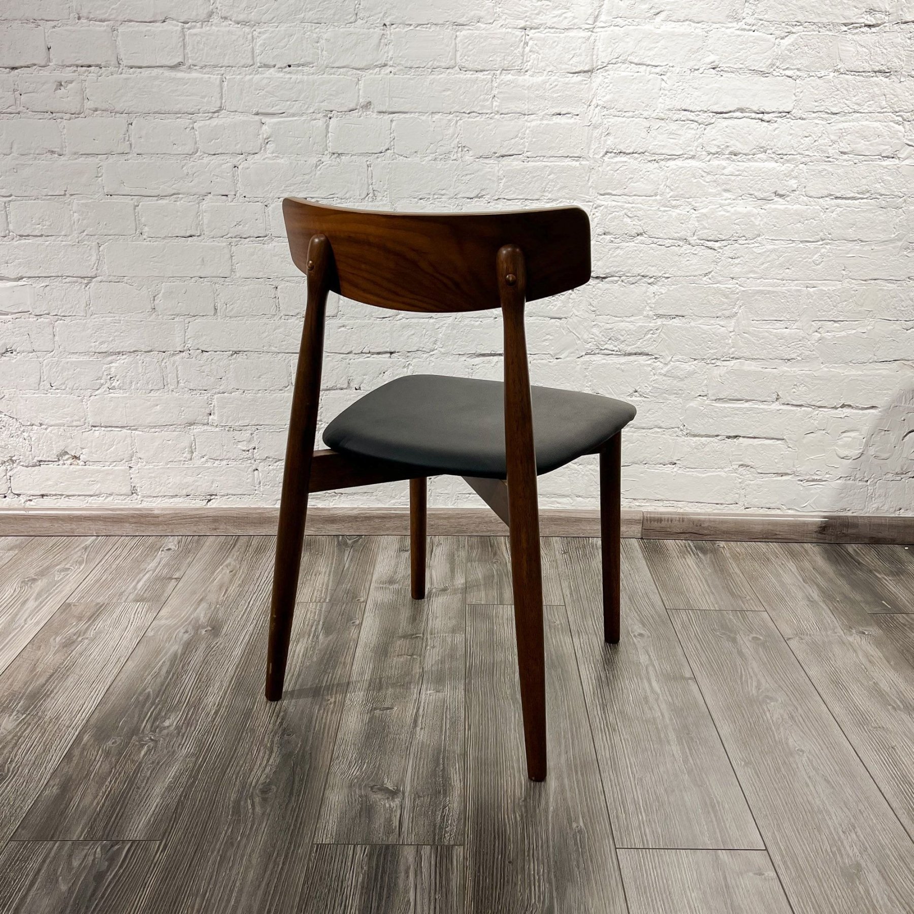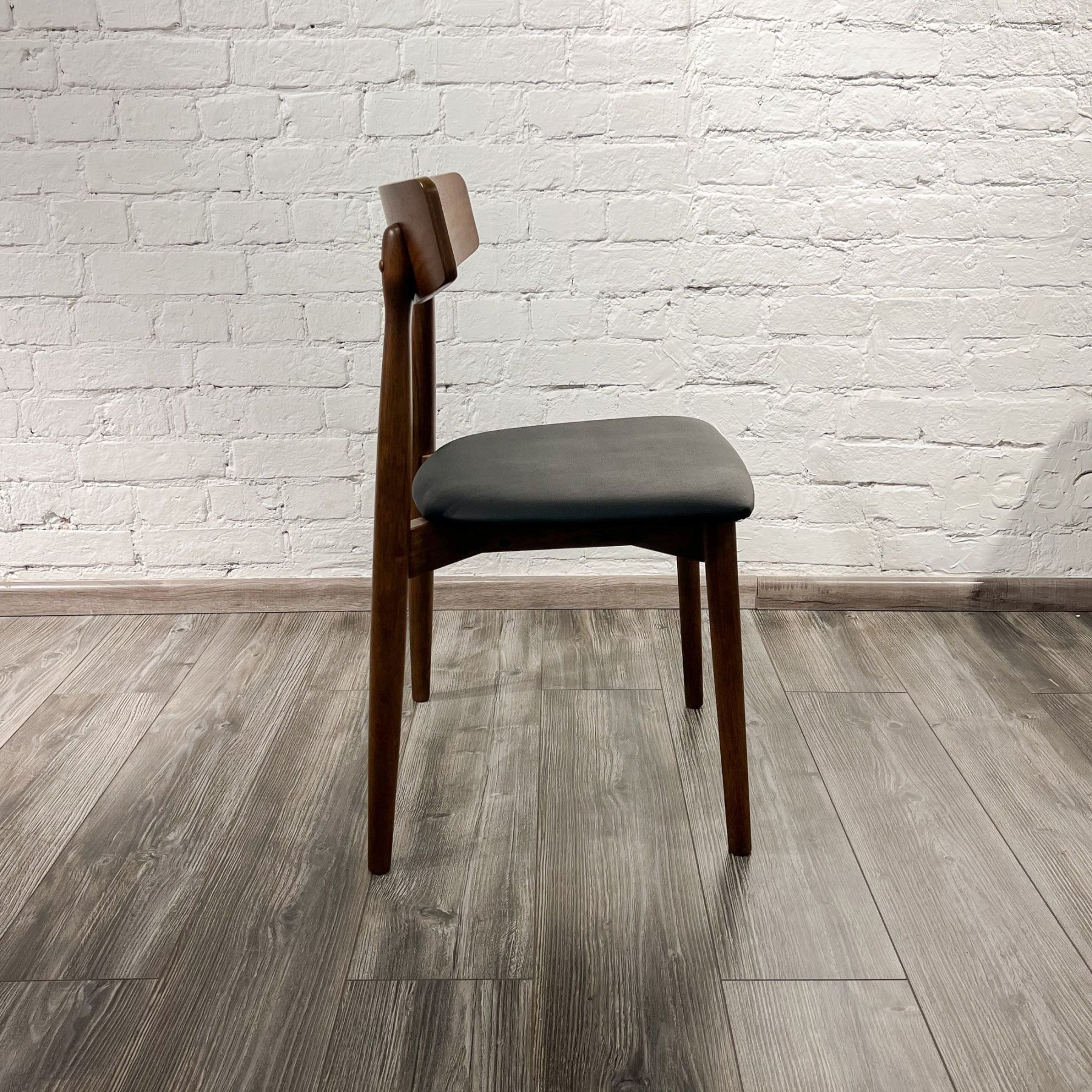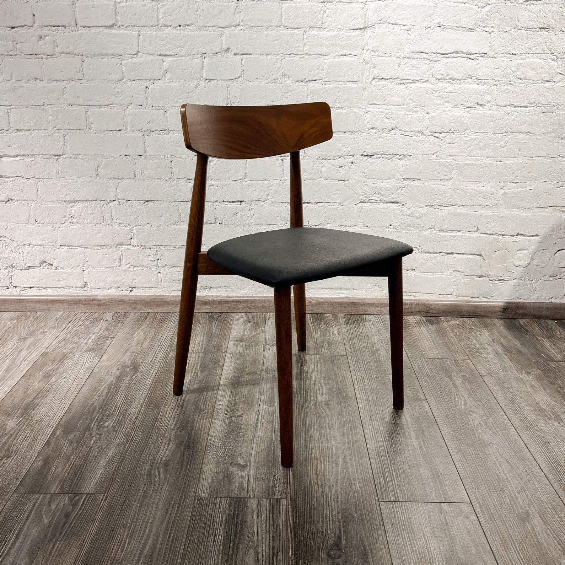 Дизайнерская разработка знаменитого датского художника Кая Кристиансена. Этот удивительно элегантный стул для жилых и коммерческих помещений сочетает в себе классический и современный материалы. Ножки и основание выполнены из натурального дерева, а спинка и сидение обиты экокожей благородного черного цвета. В результате создан неповторимый предмет интерьера.