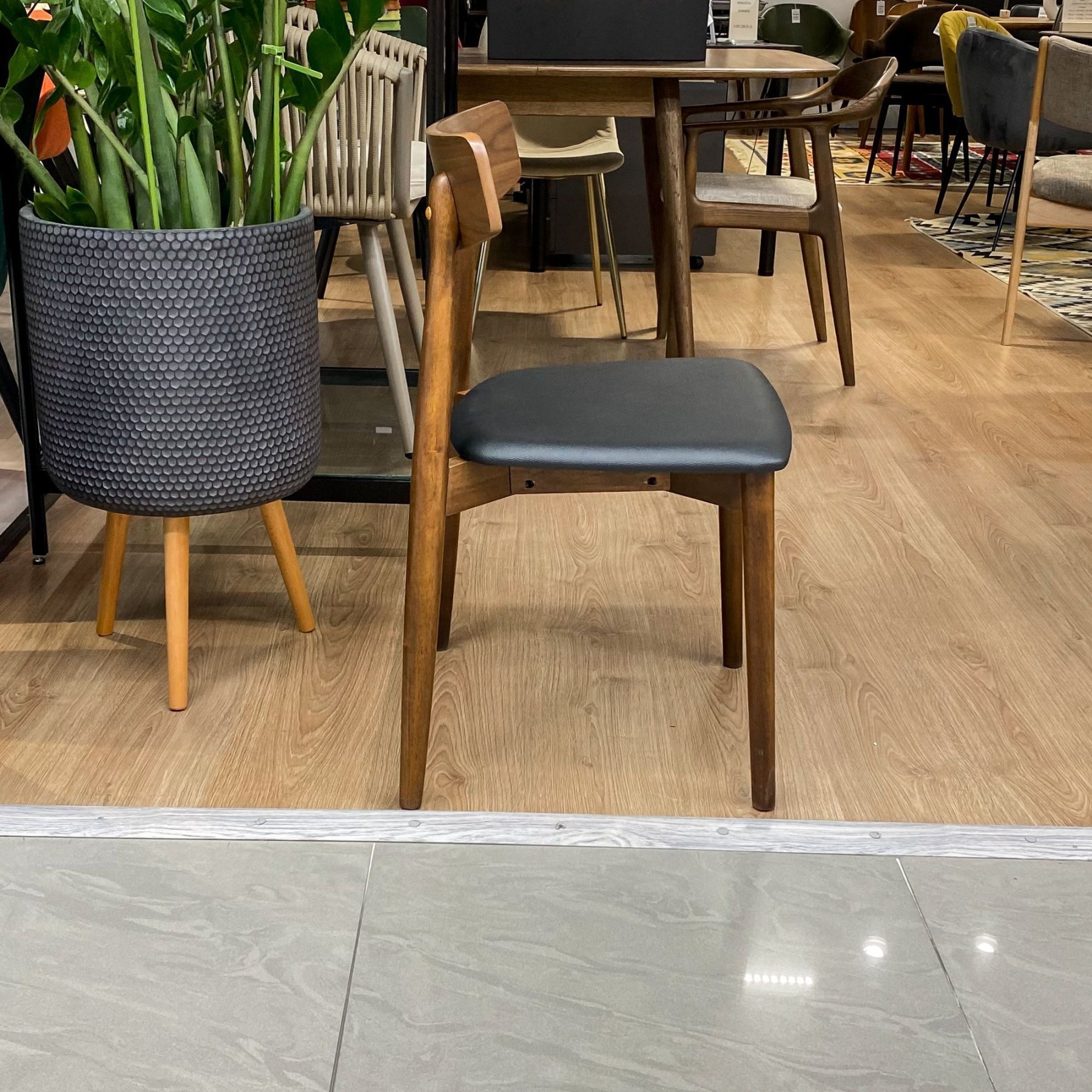 Стул сиденье эко-кожа (черный), ножки дерево гевея покрашенная под дуб светлый